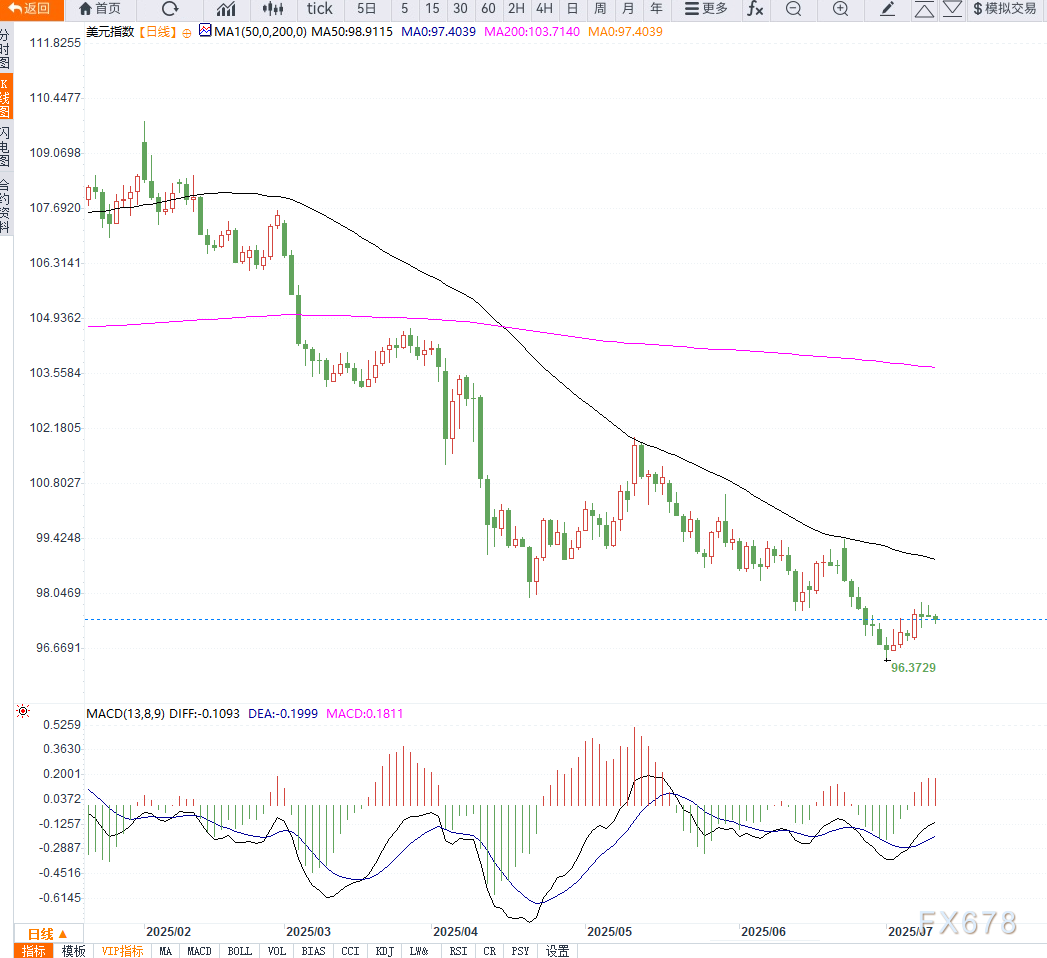 特朗普加码关税压力,美元市场反应有限 ![]() 美联储6月17-18日会议纪要显示,大多数与会官员认为短期内不宜急于降息,除非确认由关税带来的价格压力是“温和或暂时”的。然而,多数官员仍认为年内适度降息是可能的,尤其是在劳动力市场出现疲态的情况下。 焦点转向Waller、Daly与Musalem讲话,或影响美元短期走向 今晚,美国联邦储备理事会成员Christopher Waller、旧金山联储主席Mary Daly与纽约联储理事Alberto Musalem将陆续发表讲话。Waller此前明确支持降息,并在6月底表示:“美联储不应等到劳动力市场崩溃才采取行动。” 若Waller延续此前立场,将强化市场对7月政策会议采取行动的押注,可能对美元构成短线压力。 美元表现最强的是兑瑞郎,而兑澳元、纽元跌幅最明显,这或反映市场对大宗商品相关经济体对美关税反制的担忧加剧。 一位汇市策略师指出:“当前美元走势更多是对‘未来政策预期’的交易,今晚官员讲话将决定短期方向。” ![]() 美元指数虽面临美中及日韩关税风险升温,但仍维持高位横盘,显示市场对于风险尚未全面定价。关键在于联储内部对利率政策的分歧是否收敛,特别是Waller等官员能否在今晚明确政策信号。 若“前瞻性宽松”论调升温,美元或自高位回落,否则仍维持坚挺。关注97.20与98.10两个技术支撑阻力位的突破情况。 ![]() |