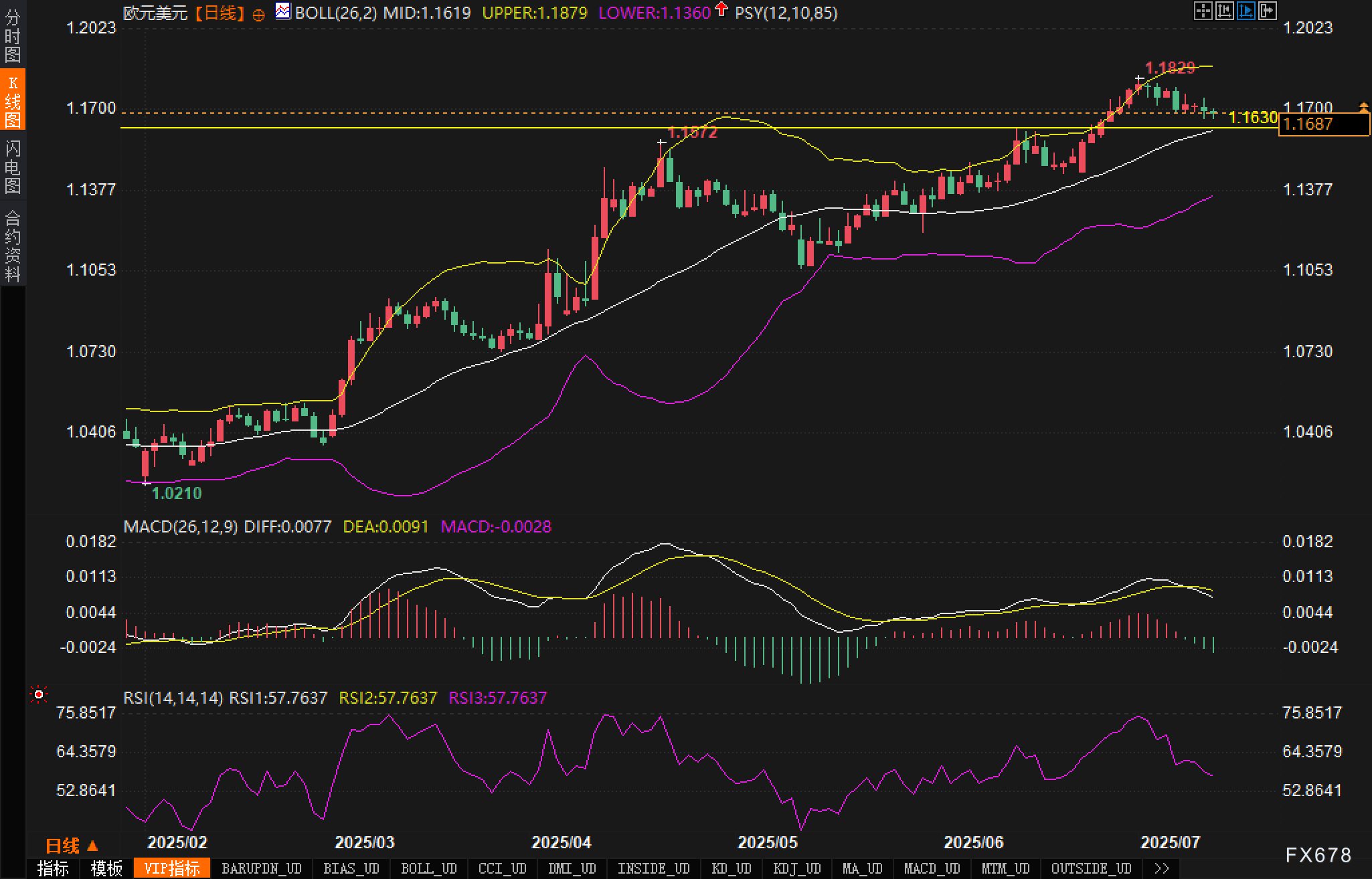 周五(7月11日),欧元兑美元连续第三日承压,欧洲时段交投于1.1690附近,日内最低触及1.1665。近期汇价创下阶段高点1.1829后出现持续性调整,周线暂录得约0.8%的跌幅。本轮调整伴随着美方宣布将欧盟列入新一轮关税清单,并上调对其他国家的关税税率至15%-20%,打压市场风险偏好情绪。 ![]() 近期,美国方面公布的初请失业金人数下降至227000人,为七周低位,强化了美国劳动力市场的韧性,进而支撑美元走强。同时,CME利率观察工具显示,市场对美联储7月降息的预期已降至不足5%,而9月降息预期亦从72%降至65%。 尽管美联储内部存在一定分歧:一方面,Waller与Daly倾向于提前降息,另一方面,Musalem认为仍需观察关税影响是否短期化。但整体市场当前更倾向于美元继续维持强势。 欧元方面,法国6月CPI月率录得0.4%,年率上修至0.9%,而德国通胀年率回落至2.0%,反映欧元区整体物价压力缓和。欧洲央行内部则表达出较为审慎的态度,Schnabel明确表示除非通胀出现明显偏离,不考虑进一步降息,而Panetta则提出若经济下行风险强化,需维持政策灵活性。 技术面: 当前汇价正在展开技术性回撤,从高点1.1829回落,MACD柱状图已由正转负,MACD线亦形成死叉,显示短线动能减弱。RSI指标自超买区域(前期触及75.85)回落,目前位于57.76,尚未进入超卖区,预示汇价仍有进一步下探空间。 ![]() 市场情绪观察 整体市场情绪正转向谨慎,尤其在美国再度加码关税政策、欧洲经济数据温和回落的背景下,资金对欧元的配置意愿出现削弱。美联储官员立场分化在短期内增添不确定性,但强劲的就业数据增强了美元多头信心。汇价短期回落尚未引发恐慌性抛售,但技术面指标的回落与基本面数据趋冷同步,引发市场对中期趋势的重新评估。 后市展望: 多头视角: 分析认为若1.1630支撑位稳固,并伴随美国数据转弱,汇价有望再次上探1.1750及1.1829高点区域。 空头视角: 分析认为若失守1.1630,将引发更深调整,MACD背离与RSI下行共振,或指向1.1500甚至1.1360区域的技术回测;若再结合布林带中轨的跌破信号,空头市场结构短线仍具主导地位。 综合来看分析认为,短期汇价仍处于技术性回撤阶段,市场情绪偏谨慎,趋势反转尚需更多基本面支持。交易员密切关注下周欧元区与美国通胀及零售数据,判断政策预期的进一步演化。 ![]() |