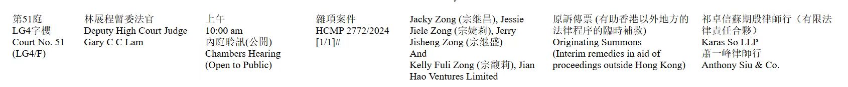 娃哈哈集团掌门人宗馥莉,正卷入一场遗产大战。 援引有关报道称,2025年7月,宗继昌(Jacky Zong)、宗婕莉(Jessie Zong)、宗继盛(Jerry Zong)三人,将娃哈哈集团现任董事长、宗庆后之女宗馥莉(Kelly Fuli Zong)起诉至香港法庭——三位原告被他们的律师确认为是宗馥莉的“同父异母兄弟姐妹”,他们正寻求一项禁令,阻止宗馥莉处置汇丰银行账户内的资产,并追讨其父宗庆后生前承诺的21亿美元(约合150亿元人民币)信托权益。 ![]() (图源:香港司法机构网站截图) 原告的律师称,三人也同时向杭州一家法院提起诉讼,以确保其各自每笔价值7亿美元的信托权利。 需要指出的是,原告表示,宗庆后曾指示下属在香港汇丰银行设立信托,后来当资金不足时,还要求其助手将人民币兑换成美元。 截至2024年初,该汇丰银行账户余额约18亿美元。其中一份法律文件显示,截至2024年5月,约有110万美元从汇丰银行账户中被转出。 三位原告请求法庭冻结该汇丰银行账户,并要求宗馥莉尊重其父亲的遗嘱,支付数百万美元的资产利息,并赔偿他们因转移资金而产生的损失。 不过,宗馥莉的律师团队对此强烈反对。宗馥莉的律师称,宗馥莉不接受这些证据,而且宗庆后并没有向她发出指示。 在公众的过往印象中,“布鞋首富”宗庆后的家庭关系简单:妻子施幼珍、独女宗馥莉。 21世纪经济报道记者了解到,娃哈哈集团管理层对外成立的多家投资主体,其中一家名为广元金信投资有限公司,该公司股权结构中,宗馥莉持股60%,杜建英持股40%。 此外,如娃哈哈集团关联公司沈阳娃哈哈荣泰食品有限公司的三位董事分别为杜建英、宗继昌、宗婕莉。