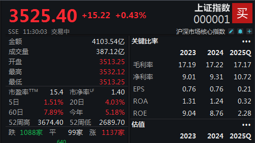 每经记者|刘明涛 每经编辑|叶峰 7月14日,A股大小指数再度分化,截至上午收盘,上证指数午盘涨0.43%报3525.4点,深证成指跌0.23%,创业板指跌0.74%,北证50涨0.46%,科创50跌0.07%,中证A500涨0.13%,A股半日成交9874.34亿元。 资金面,央行公告称,7月14日以固定利率、数量招标方式开展了2262亿元7天期逆回购操作,操作利率1.40%,投标量2262亿元,中标量2262亿元。 消息面,近期,随着长江中下游地区“出梅”,全国大范围内遭遇高温侵袭,全国最大电力负荷飙升至14.65亿千瓦,创下历史新高,同比增长近1.5亿千瓦。 据海关统计,今年上半年,我国货物贸易进出口21.79万亿元,同比增长2.9%。其中,出口13万亿元,增长7.2%;进口8.79万亿元,下降2.7%。进入6月份,进出口、出口、进口同比全部实现正增长,且增速都在回升。 海关总署表示,目前中美双方团队正在加紧落实伦敦框架有关成果。中方愿再次强调,日内瓦共识和伦敦框架来之不易,讹诈胁迫没有出路,对话合作才是正道。希望美方继续同中方相向而行,让合作成为中美经贸的主旋律,推动全球贸易体系重回公平与开放的轨道,为全球经济复苏和增长作出应有的贡献。 板块方面,电力股集体走高,贵金属概念表现强势。