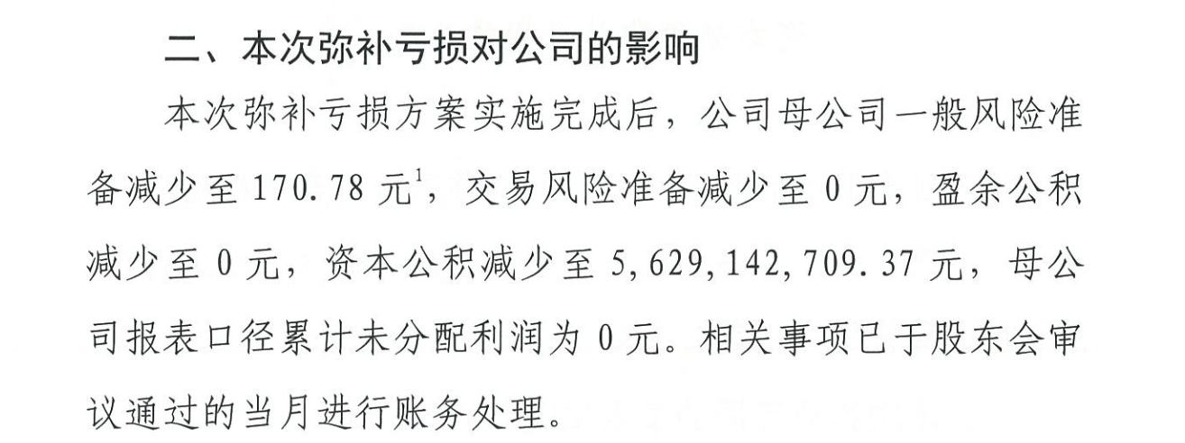 每经记者|陈晨 每经编辑|肖芮冬 7月14日,国新证券发布公告称,截至2024年末,公司母公司报表未分配利润为-61.21亿元。公司计划使用风险准备金、法定盈余公积、资本公积弥补亏损。本次弥补亏损方案实施完成后,母公司报表口径累计未分配利润为0元。 《每日经济新闻》记者了解到,国新证券此次“补窟窿”的操作源于历史遗留问题。2020年,国新证券的前身——华融证券巨额亏损逾82亿元,这一重大经营失利也直接导致公司在此后数年持续处于未分配利润为负的状态。而国新证券本次通过资本公积等弥补母公司累计亏损,或意味着国新证券已启动“历史包袱”的化解工作。 国新证券弥补母公司累计亏损国新证券披露信息显示,根据立信会计师事务所(特殊普通合伙)出具的审计报告,截至2024年12月31日,国新证券母公司报表未分配利润为-61.21亿元,一般风险准备为7.07亿元,交易风险准备为7.07亿元,盈余公积为7.07亿元,资本公积为96.28亿元。 面对累计亏损,国新证券根据相关法律法规以及《公司章程》等相关规定,审议通过了《关于使用风险准备金、法定盈余公积、资本公积弥补亏损的议案》,即使用母公司一般风险准备7.07亿元、交易风险准备7.07亿元、盈余公积7.07亿元和资本公积39.99亿元,四项合计61.21亿元,用于弥补母公司累计亏损。 记者了解到,本次弥补亏损方案实施完成后,国新证券母公司一般风险准备仅剩170.78元,交易风险准备减少至0元,盈余公积减少至0元,资本公积减少至56.29亿元,母公司报表口径累计未分配利润为0元。据悉,相关事项已于股东会审议通过的当月进行账务处理。 图片来源:国新证券公告截图国新证券表示,公司目前经营情况正常,财务状况稳健,各项债券均按期足额兑付兑息,未发生违约情况。公司会按照法律法规的规定,及时履行信息披露义务。 更名前曾发生过巨额亏损Wind数据显示,2022年~2024年,国新证券净利润分别为5.01亿元、4.84亿元、3.20亿元,虽然净利润连年下滑,但仍处于盈利状态。为何还需要弥补如此大的累计亏损呢?或许可以从财务报表中一探究竟。 2020年,彼时国新证券名为华融证券,当年华融证券开展了风险资产相关的处置和清理工作。华融证券称,风险资产形成的历史原因和当期市场影响交织,叠加新冠疫情冲击和市场“爆雷”事件,客户履约能力受到较大影响,相关资产质量也较前期承压。对此,华融证券对风险资产进行了全面审视、评估及减值测试,当期确认了信用减值损失和公允价值变动损失,对经营业绩造成了非常重大的影响。 于是,华融证券出现了巨额亏损。数据显示,2020年,华融证券整体实现营业收入11.86亿元,同比下降63.66%;净利润亏损82.35亿元。2020年年末,华融证券未分配利润为-78.59亿元(母公司报表口径),此后在近几年盈利的情况下,逐渐减少至2024年年末的-61.21亿元(母公司报表口径)。 2022年年初,中国华融发布公告称,中国华融(作为出让方)与国新资本签署《国有产权交易合同》,拟向国新资本转让持有的华融证券71.99%股权。本次转让完成后,中国华融将不再拥有华融证券任何权益,且华融证券不再为中国华融的附属公司。2022年6月,证监会核准中国国新控股有限责任公司为华融证券实际控制人,对国新资本受让华融证券股权无异议;次月,公司名称由华融证券变更为国新证券。 |