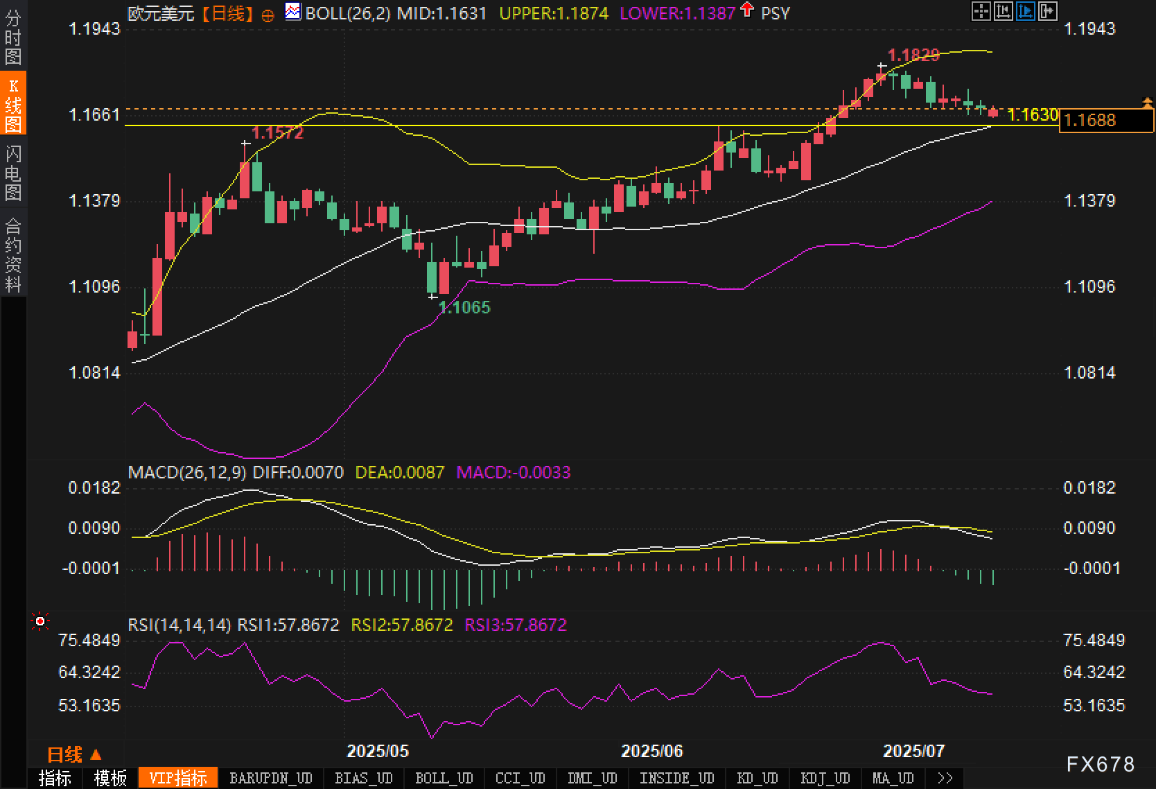 周一(7月14日),欧元兑美元(EUR/USD)欧洲时段自三周低点1.1655附近反弹。然而,汇价整体走势仍维持在自7月初以来的下降通道内,市场对美国政府新一轮30%关税措施的担忧抑制了风险偏好,限制了汇价反弹空间。汇价暂时受阻于1.1700关口下方,市场聚焦于晚间欧元集团会议和欧洲央行官员讲话,以及即将公布的美国6月CPI数据。 ![]() 当前市场焦点集中在欧美贸易关系的潜在缓和信号上。尽管美国总统特朗普宣布对欧盟所有商品征收30%的关税,打压市场情绪,但欧盟方面态度依旧积极。欧盟贸易专员Sefkovic公开表示,谈判正接近达成“对双方都有利”的协议,欧盟亦延长了对美方反制措施的暂停期,这为欧元汇价提供了一定支撑。 另一方面,欧洲央行内部对通胀前景的担忧有所加剧。上周五,欧洲央行理事潘塔纳强调,通胀下行风险加剧,政策需要继续宽松,这一表态强化了欧洲央行持续维持宽松立场的预期,抑制了欧元多头情绪。同时,美国国内政策不确定性升温。芝加哥联储主席Goolsbee警告称新一轮关税将进一步扰乱通胀前景,使得美联储的政策前瞻性更加复杂化。而特朗普再次向美联储主席鲍威尔施压,甚至暗示其可以被替换,进一步引发市场对政策稳定性的担忧。 技术面: 从日线图上看,欧元兑美元自创下阶段高点1.1829后持续回落,目前运行在明显的下降通道中。布林带结构显示,布林中轨位于1.1631,汇价当前正围绕中轨附近运行,短线存在方向选择压力。布林带上下轨(上轨1.1874,下轨1.1387)出现明显收口,显示当前波动率收窄,行情正处于整理蓄势阶段。 ![]() MACD指标上,DIFF与DEA呈死叉状态,且双线向下发散,MACD柱状图重回零轴下方,表明空头动能仍占据主导。RSI指标徘徊于57附近,虽未进入超卖区,但动能已有所减弱,短线或仍存回调空间。 市场情绪观察: 当前市场情绪维持谨慎偏空格局。美国新关税政策释放出对欧盟贸易关系趋紧的担忧情绪,尽管部分市场人士视其为谈判策略而非既定事实,但其对风险偏好造成的抑制仍不可忽视。短期来看,交易员普遍维持观望态度,静待欧元区与美国之间的谈判结果及美联储未来政策路径的进一步指引。 此外,市场对欧洲央行政策持续宽松的预期逐步形成共识,降低了欧元中期反弹的空间。尽管欧盟方面展现出一定外交策略灵活性,但在美方政策极不确定性和全球经济前景偏弱的背景下,市场情绪难以完全扭转。 后市展望: 短期展望: 短期内,汇价将在1.1650至1.1700区间展开争夺,分析认为若欧元无法突破并站稳1.1700关口,则空头结构维持不变,汇价将继续测试下方1.1630、1.1600等支撑位;一旦失守,则可能打开进一步回撤空间,目标指向布林下轨1.1387附近。 若市场风险偏好回暖或欧盟与美方就关税问题达成积极进展,或将提振欧元短线反弹动能,但在未形成趋势性逆转信号前,仍视为反弹而非反转。 中长期展望: 从中期视角看,分析认为若欧洲央行持续释放鸽派信号,配合美国政治不确定性加剧、通胀数据反复等因素,欧元兑美元可能延续宽幅震荡格局;除非美联储明显转向激进降息路径,否则汇价上行压力依旧较重。 未来几周重点关注美联储的货币政策表态以及欧美谈判进展,若不确定性继续升温,空头市场结构恐进一步巩固。 ![]() |