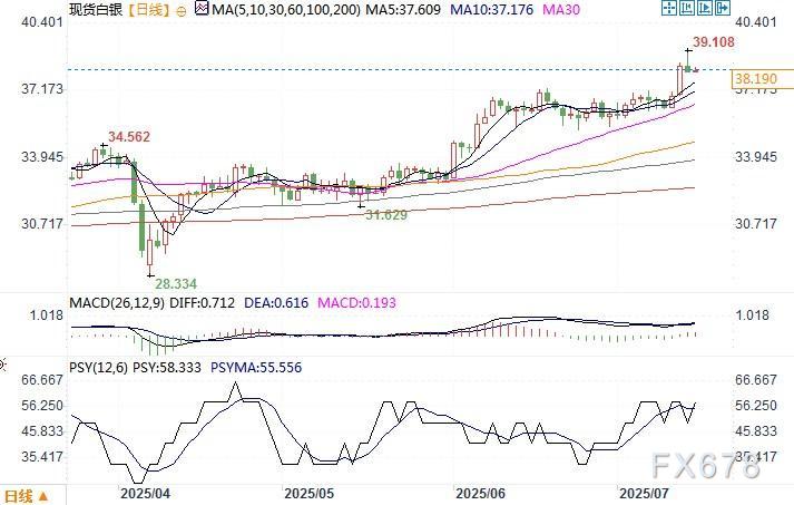 一位市场分析师表示,尽管银价触及每盎司39美元的阻力位,但仍有足够的动能挑战2011年创下的历史高点。 ![]() Cawley表示:“货币贬值通常会促使投资者转向硬资产,金银从这一趋势中受益。美元的疲软部分源于对美国通胀可能因拟议的关税和其他政策措施而保持粘性的持续担忧,这些通胀担忧引发了对避险货币和贵金属需求的新一轮飙升。投资者越来越多地寻求保护,以防范潜在的货币贬值和购买力下降,这使得白银成为抵御经济不确定性的有吸引力的对冲工具。” 与此同时,预计白银也将受益于美国货币政策的最终转变。尽管市场并未预计本月晚些时候会降息,但市场仍强烈预期美联储将在9月开始降息。 Cawley说:“如果美国利率大幅下降,环境将对一系列贵金属变得更加有利。降息降低了持有金银等非收益资产的机会成本,这可能会大幅推高价格。除非基本面发生改变,否则银价似乎有能力延续其令人印象深刻的涨势,并在未来几周触及多年新高。” 尽管白银有望走高,但Cawley指出,他预计白银不会继续跑赢黄金。银价短暂升至每盎司39美元上方,推动金银比率降至85.88,为去年12月以来的最低点。该比率已从4月份107以上的高点下降了近20%。 Cawley表示:“价差回到多年来的交易通道,MACD指标显示价差正变得超卖,因此未来几个月白银进一步跑赢黄金可能有限。” ![]() 北京时间7月15日10:47 现货白银 报 38.190 美元/盎司 ![]() |