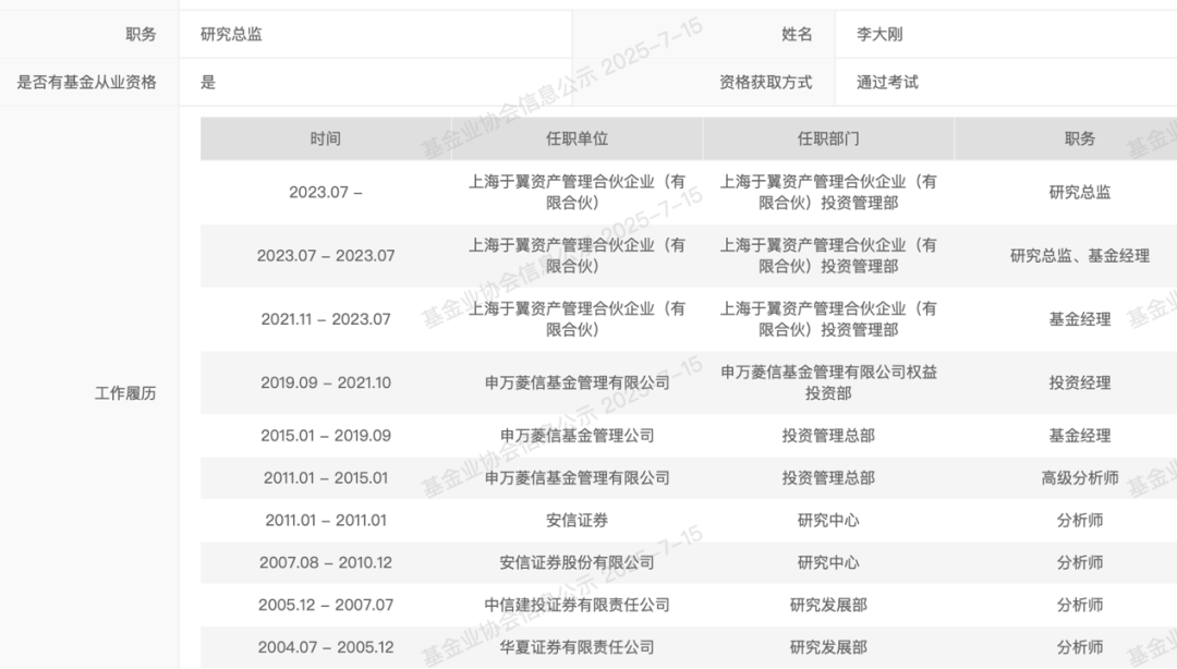 私募圈传来令人痛心的消息。 7月14日下午,沪上知名证券私募上海于翼资产管理合伙企业(有限合伙)(以下简称于翼资产)发布了一则讣告,该公司研究总监、基金经理李大刚于7月12日晨突发疾病,于上海不幸逝世,享年48岁。 ![]() 于翼资产表示,李大刚入职公司以来始终保持高度的专业精神和责任感,其专业素养、职业操守和乐观开朗的态度深受公司员工的尊敬与爱戴。“公司管理层、全体员工对李大刚先生的不幸离世表示深切痛心和哀悼,对李大刚先生多年来为公司发展做出的突出贡献以及对所管理基金资产的尽心尽责致以最诚挚的感谢,并将全力协助逝者家属处理后事。” 公开资料显示,李大刚2004年起从事金融相关工作,曾任职于中信建投证券研究所、安信证券研究所,担任分析师;2011年1月加入申万菱信基金,曾任行业研究员、节能环保研究组组长等职务,2015年开始担任基金经理,管理公募基金产品,在申万菱信基金工作长达10年时间。2021年11月,李大刚加入于翼资产,担任基金经理,后来成为研究总监。 ![]() 今年7月4日,于翼资产官微发布了一篇来自李大刚的市场观点。李大刚在文中表示,本周(6月30日—7月4日)市场持续上行,结构上有较为明显的“跷跷板效应”。随着美国和世界各国关税谈判最终时间点临近,海外宏观环境将逐渐稳定。“在此背景下,我们认为当前时间点应该逐步聚焦业绩兑现风格,寻找中报业绩亮眼的板块和公司进行布局。” ![]() 据记者了解,于翼资产曾经在2020年晋级为百亿元级证券私募机构,但后来由于核心投研人物离职,公司旗下产品被赎回,管理规模大幅萎缩。 据于翼资产官网信息,公司成立于2016年2月25日,注册资本为2000万元;公司核心成员来自国内大型基金公司以及知名证券研究机构,平均拥有10年以上资产管理行业从业经验。截至2021年1月底,于翼资产交易层基金规模约90亿元,投资策略涵盖股票多头以及宏观对冲。 基金业协会网站最新信息显示,目前于翼资产旗下正在运作的私募基金产品有23只,最新管理规模在10亿元至20亿元区间。 ![]() (文章来源:中国基金报) |