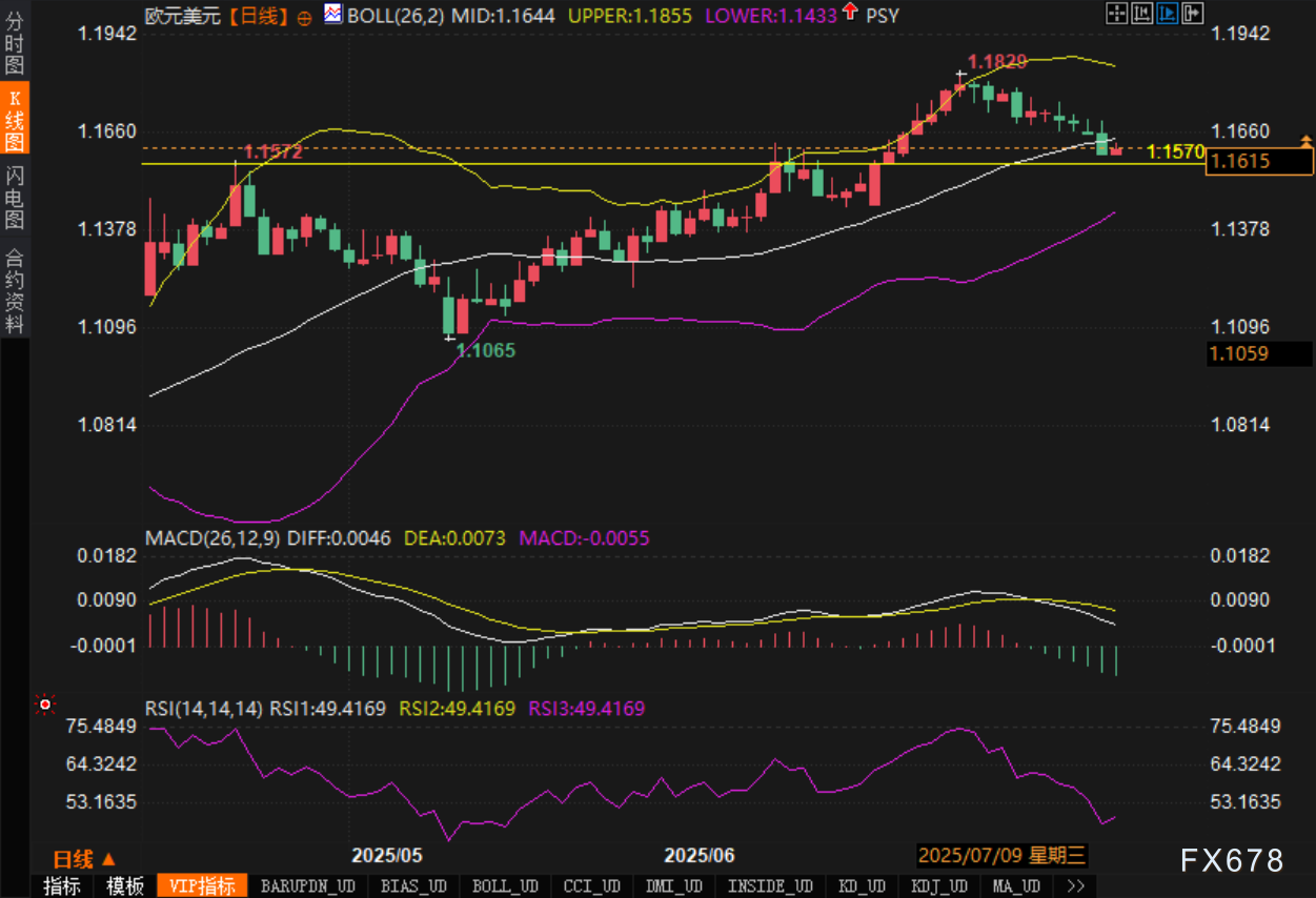 周三(7月16日),欧元兑美元汇价在经历前一日0.5%的大幅回调后出现弱势反弹,从1.1600附近的三周低位反弹至1.1620附近。尽管当前小幅走强,但整体依旧运行于下降趋势之中,自触及1.1829高点以来持续下行。此前公布的美国6月消费者价格指数(CPI)走高,推动美元指数及美债收益率双双获得支撑,令欧元承压明显。 ![]() 美联储主席鲍威尔持续强调观察通胀趋势对未来政策路径的关键性,而周二公布的CPI数据显示美国6月通胀环比增长0.3%、同比加速至2.7%,核心CPI年率亦升至2.9%。尽管略低于市场预期的3%,但依旧强化了通胀粘性担忧,市场对年内降息预期迅速降温。CME Fed Watch Tool数据显示,7月降息预期由数据前的6%跌至3%,9月降息概率也从逾60%降至54%,反映出市场对美联储放松货币政策的信心正在减弱。 与此同时,欧元区经济数据略显企稳。德国7月ZEW经济景气指数从47.5跃升至52.7,远超市场预期的50,显示投资者信心持续修复。此外,欧元区5月工业产出环比增长1.7%,显著高于预期的0.9%,并伴随前值上修,提供了一定基本面支撑。但整体来看,欧元的反弹仍然受到美元相对强势压制,尤其在贸易不确定性升温、美方延续关税立场的背景下,欧元多头信心依然不足。 技术面: 从日线图来看,汇价自高点1.1829以来连续数日回落,跌破布林中轨(1.1644)后暂获支撑。当前K线在1.1570形成短期支撑平台,略高于前期震荡箱体上沿。 ![]() 分析认为支撑位关注1.1570与布林下轨1.1433;上方初步阻力位在布林中轨1.1644以及前高1.1829区域。 市场情绪观察: 目前市场情绪处于相对谨慎状态,美元多头在高通胀数据推动下短线占据上风,但由于核心通胀略低于预期,部分交易员依旧寄望于美联储年内政策边际松动,市场预期出现一定分化。欧元方面,在经济数据阶段性企稳之下,市场观望情绪升温,尤其是在欧美政策差持续拉大的背景下,多空博弈倾向趋于复杂化。 此外,政治因素仍对市场情绪造成干扰。美国总统近日再次呼吁美联储降息,并向多个国家发出征税意向信函,增加全球不确定性背景下的避险需求,间接支撑美元,限制了欧元上行空间。 ![]() |