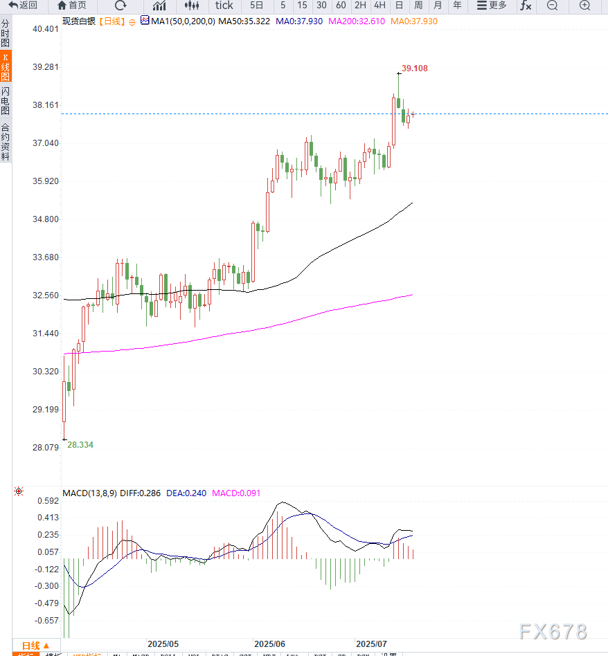 周四亚洲交易时段,白银价格在38美元关口附近小幅震荡整理,市场进入观望状态,等待美国与欧盟间贸易磋商的进一步消息。此次谈判被视为对全球贸易格局影响重大的关键节点。 ![]() 从历史经验来看,银价在全球经济不确定性加剧时期通常具备抗跌甚至上涨的避险属性。 市场还对即将于8月1日生效的新一轮美方关税举措保持警惕,因这可能加速通胀压力累积,进而影响美联储货币政策路径。 “目前来看,关税对经济的影响仍较温和,但未来将逐步增强。”——纽约联储主席约翰·威廉姆斯 亚特兰大联储主席拉斐尔·博斯蒂克也指出,“关税导致的通胀压力正在构建,并有望在接下来的数月中持续升温。” 在高通胀环境下,白银因其保值与抗通胀属性,通常表现优于大宗商品与股票市场,尤其在利率调整预期分歧较大的阶段,其作为无息资产的吸引力亦有所增强。 从日线图来看,银价日前突破对称三角形整理形态,并创出逾十年新高,达到39.13美元,表明市场中期趋势仍倾向于多头主导。 目前银价稳守20日指数移动均线(EMA)之上,该均线目前上行至37美元,构成强力短期支撑。同时,14日相对强弱指标(RSI)持续运行在60-80之间,反映出当前买盘动能依然强劲。 上方首个重要阻力位为40美元整数关口,该水平具有较强的心理与技术双重压力。若成功突破,有望打开上行至41.50甚至43美元的空间。下行方面,若跌破20日EMA,银价或回测36.30美元支撑区域。 “白银目前处于良性上涨通道中,只要不破20日EMA,技术性多头将持续主导市场节奏。”——市场技术分析师 ![]() 当前银价走势处于多空博弈关键阶段,一方面美欧贸易谈判若顺利推进,可能缓和部分避险需求;另一方面,通胀预期持续升温,仍将为贵金属提供中长期支撑。 技术形态强势,若站稳38美元上方并放量突破40美元关口,将验证市场对通胀防御资产的偏好正逐步强化。 ![]() |