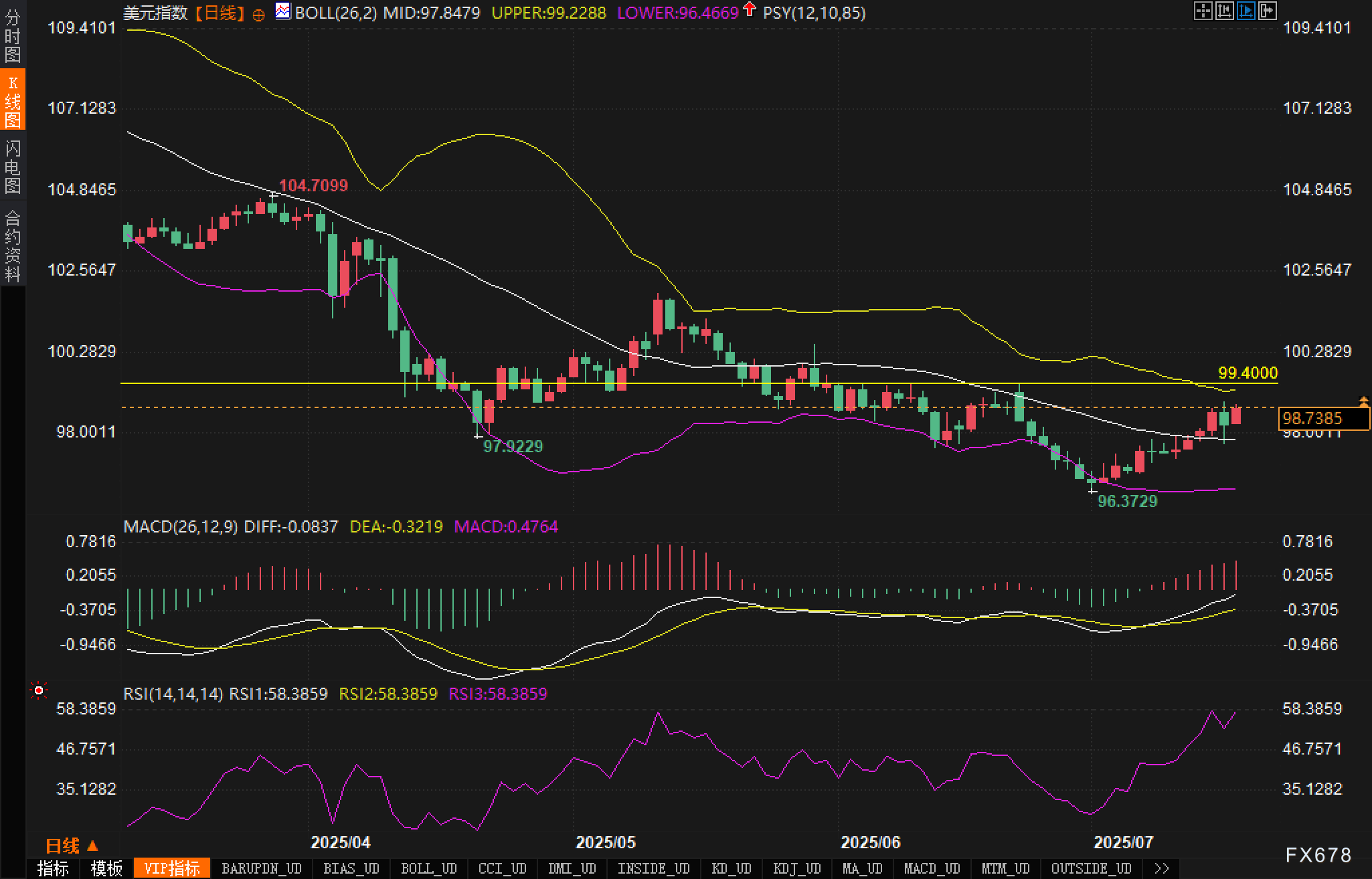 近期,在总统特朗普被爆曾草拟信件意图罢免美联储主席鲍威尔的消息引发市场短线剧震后,美元指数一度大幅回落,随后因白宫迅速澄清该传闻并否认实际行动而收复大部分跌幅。周四(7月17日)欧洲时段,美元指数交投于98.7附近,距重要阻力位99.4000仅一步之遥。当前市场目光正聚焦于即将公布的美国6月零售销售数据,波动率料将继续维持在高位。 ![]() 本轮美元波动起始于一则未经证实的政治传言。据路透报道,特朗普曾向共和党议员提出罢免鲍威尔的建议,并草拟相关信件,引发市场对美联储独立性的担忧。市场普遍认为,若鲍威尔离任,继任者可能更趋鸽派,美联储降息预期将被大幅前置,导致美元短线大幅承压。但随着特朗普本人否认相关传闻,美元迅速反弹,反映出市场对“政策干预”风险已有心理抗体。 美联储最新发布的褐皮书显示,各地区普遍面临因关税引发的成本上升压力,多数企业开始将部分成本转嫁至消费者端,但受限于价格敏感性,利润空间受到挤压。这种“输入型通胀”现象可能强化美联储对短期内不降息的谨慎态度。美联储理事Williams指出,当前货币政策维持“适度紧缩”是合适的,反映出其并不急于调整政策路径。 技术面: 从日线图来看,美元指数目前运行在布林带中轨(97.8479)上方,短期呈现震荡上行态势。近期低点96.3729构成短期有效支撑,自该点位反弹以来,MACD指标呈现底背离结构,柱状图翻红,双线形成金叉,显示多头动能增强。 ![]() RSI指标当前位于58.39,逼近60的强弱分界,未显超买,但短期内仍具上涨潜力。分析认为若有效站稳98.90,将打开冲击100的空间;反之,一旦冲高回落并跌破97.80支撑,则可能重新测试布林带下轨96.4669附近区域,短期结构面临重新评估。 市场情绪观察: 尽管“鲍威尔去留”引发市场短线剧震,但市场表现已显示出对政治性突发事件的相对“免疫”。特朗普时代的政策风格令交易员更关注事件的实际落地性而非初期报道,反应机制更加理性;这一点从美债收益率曲线仅短暂陡峭化后迅速恢复,美元指数未出现趋势性下挫可见一斑。 在宏观数据方面,虽然PPI不及预期略显温和,但结合前一日CPI走高,整体价格压力依旧存在。交易员在等待更明确的零售数据验证消费者韧性前,普遍维持短线谨慎偏多的仓位结构。 整体市场情绪从“避险恐慌”快速回归至“结构观察”,交易节奏短促但方向感较强,属于典型的政策干扰下的震荡结构。 后市展望: 短期展望: 短期来看分析认为,美元指数的走向将高度依赖即将公布的零售销售数据;如果数据继续超预期,则美元可能挑战99.60的斐波那契23.6%回撤位,同时市场将调高对美联储9月议息会议的“按兵不动”预期; 但若数据不及预期,叠加美联储官员偏鸽表述,美元可能再度受压,回测97.80或下探97.20支撑。整体而言,短线多空博弈愈发激烈,震荡区间可能维持在97.50–99.60之间。 中长期展望: 中长期而言分析认为,鲍威尔是否连任、关税政策如何演进均为潜在变量。若特朗普施政更趋干预主义,则美元可能面临持续的政策性下行压力,结构性抛压或逐步显现;但与此同时,若美国经济保持强劲增长,长期看形成区间震荡甚至缓慢升值的结构并非不可能。 ![]() |