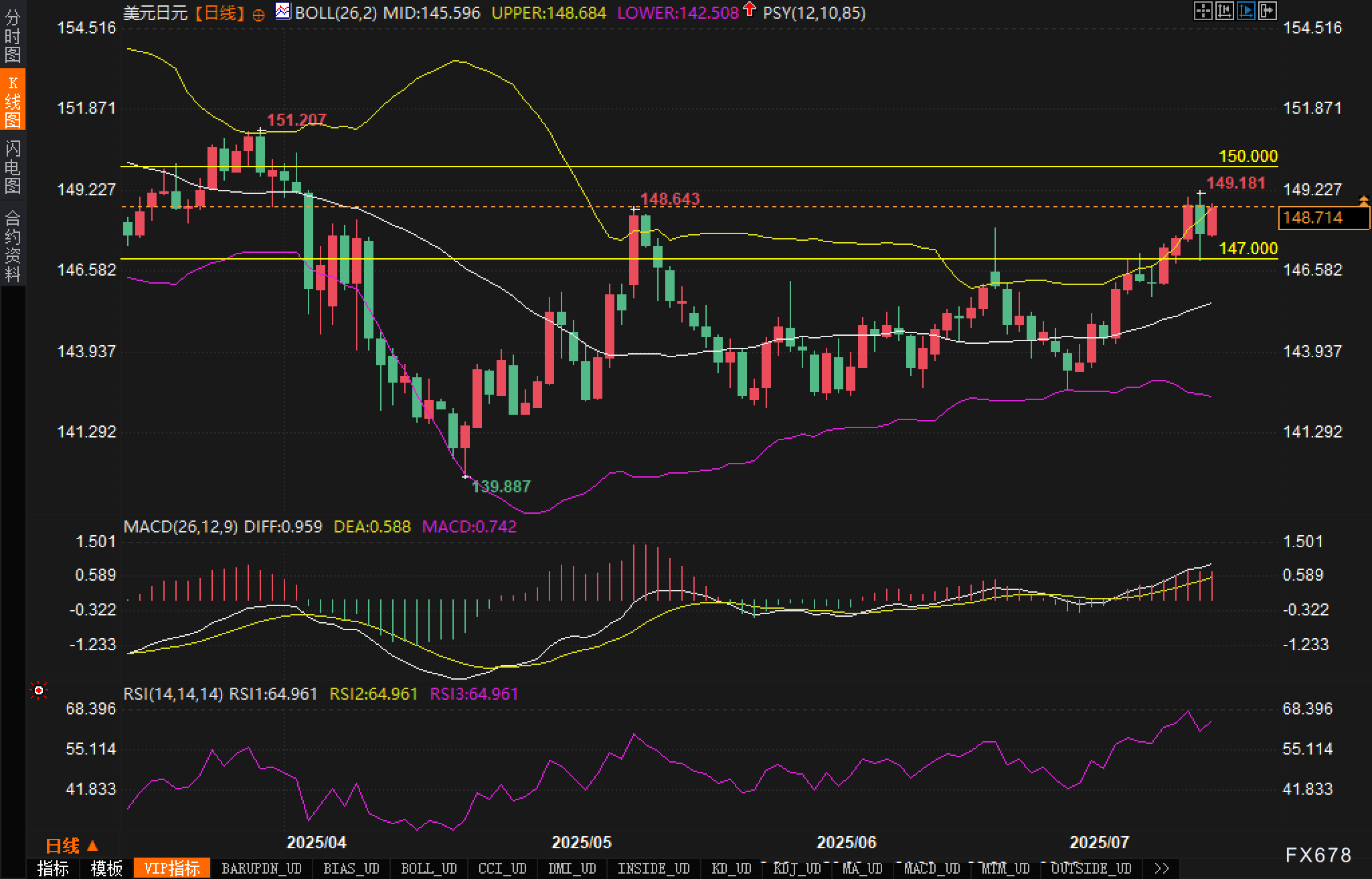 7月17日(周四),美元兑日元(USD/JPY)汇价延续升势,日内涨幅超过0.5%,美市盘前交投于148.7附近,逼近关键心理关口150。消息面上,尽管美国总统特朗普否认将撤换美联储主席鲍威尔,但对白宫内部动向的猜测提振了美元买盘。此外,纽约联储主席约翰·威廉姆斯指出,关税因素正对美国通胀预期形成上行压力,也进一步强化了市场对美联储维持鹰派基调的预期。 ![]() 美元方面,当前美国通胀数据表现强劲,6月CPI数据显示,受进口商品价格上涨影响,物价出现明显回升迹象。与此同时,多位美联储官员指出,通胀风险可能被低估,且部分因关税驱动的价格上涨仍处于酝酿期。这些言论强化了市场对美联储年内维持高利率政策的信心。美元指数(DXY)在欧洲时段升至99.00下方的三周高位,为美元兑日元提供了坚实支撑。 另一方面,日本方面则面临诸多利空因素:6月贸易数据表现疲弱,出口意外萎缩令市场担忧加剧;政局方面,日本即将于7月20日举行上议院选举,执政联盟存在失去多数席位的风险,政治不确定性上升;同时,信用评级风险亦被市场重新关注。双重压力下,日元表现落后于其他G10货币,反映市场对日元资产的避险吸引力明显减弱。 技术面: 从USD/JPY日线K线图来看,汇价自突破布林带中轨后,逐步走出上升通道,当前稳居布林带上轨区域,技术结构偏多。 ![]() 其次,MACD指标多头排列明显,快慢线(DIFF与DEA)持续上扬,MACD柱状图红柱增长,表明上行动能尚未衰竭;RSI指标运行于64.96附近,未触及超买线但维持在高位震荡,表明资金尚未出现集中获利回吐迹象。 价格层面分析认为,当前汇价已突破148.643前期高点阻力,短线目标位指向150.000整数关口;若能突破此位,将进一步打开上行空间,挑战前高151.207;下方支撑则集中于147.000关口及布林中轨145.596一线。 市场情绪观察: 当前市场情绪明显偏向多头,一方面来自美元基本面的持续强势支撑,另一方面则是日元避险属性的弱化。在特朗普否认撤换鲍威尔之后,市场疑虑并未彻底解除,反而引发对政策不确定性的进一步押注,推升美元需求。 此外,期权市场数据亦显示,USD/JPY下行保护性期权需求明显减弱,显示市场对未来一段时间汇价继续走强的预期增强。这种“顺势心理”或将推升短线流动性,但亦需警惕情绪过热后可能出现的快速回撤。 后市展望: 短期展望: 分析认为若美元兑日元突破150并企稳,短线目标或可进一步上探151.20-151.87区域。不过,150整数关口作为重要心理阻力,亦可能引发多头获利了结压力,短期盘中震荡风险上升。 中长期展望: 中长期而言分析认为,若美联储保持鹰派语调,且日本政局动荡持续发酵,则汇价有望维持在147-151区间震荡格局。预计年内USD/JPY仍以震荡上行为主,但节奏上或呈现“上行中伴随多次回撤修复”的特征。 ![]() |