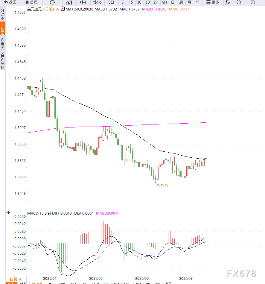在周四创下近三周新高后,USD/CAD于周五略微回落。美联储理事Christopher Waller表示,“美联储应在7月会议上启动降息”,该言论使美元从阶段高点出现修正。此外,风险情绪改善亦削弱美元避险需求,为加元提供短暂支持。 ![]() 加拿大方面,加元表现依然疲弱。特朗普宣布将自8月1日起对加拿大进口商品征收35%关税,并威胁若加拿大反制,将进一步提高税率。此外,美国将对加拿大铜出口加征50%关税,使商品出口前景更趋不确定。 虽然国际原油价格短线反弹,但油价回升并未显著提振加元,市场认为贸易担忧情绪压过油价带来的利多,使得加元在基本面上缺乏强势买盘支撑。 短线关注数据与风险情绪演变。 市场接下来将关注美国密歇根大学消费者信心指数、通胀预期与房地产数据,此外风险偏好与油价波动仍是决定USD/CAD短期方向的重要变量。总体来看,该货币对有望实现连续第二周小幅上涨。 ![]() 尽管美联储个别官员释放鸽派信号,但市场对整体利率路径的定价依旧偏向谨慎,美元依然具有较强韧性。 同时,加元受限于特朗普关税压力及全球贸易不确定性,即使油价反弹,也难形成实质提振。因此,USD/CAD在1.37关口上方维持强势整理,未来走势仍需观察美加贸易谈判进展与美联储政策信号的同步演变。 ![]() |