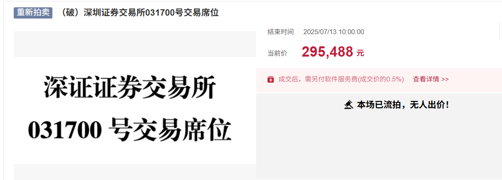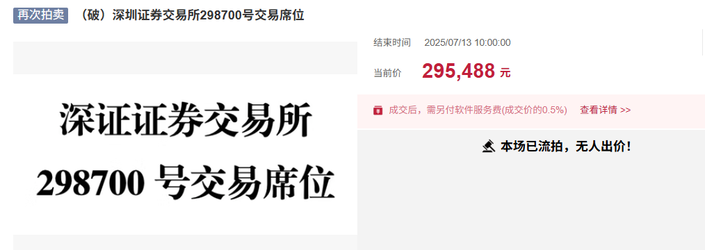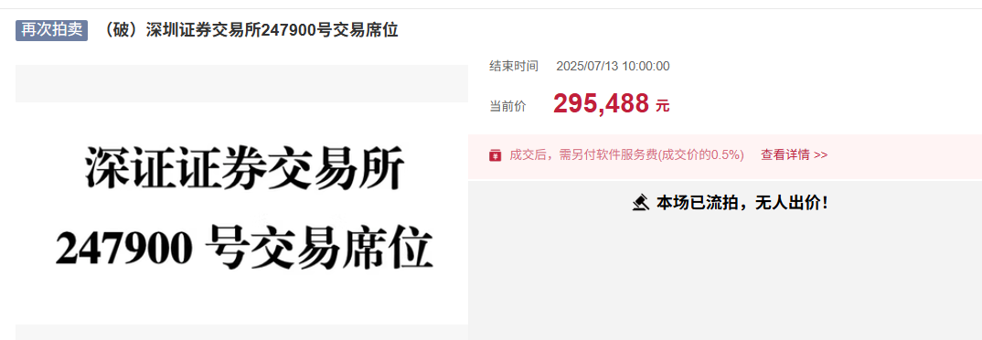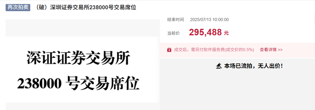 每经记者|王海慜 每经编辑|肖芮冬 近日,深交所四个交易席位在阿里资产平台上进行拍卖,起拍价均为29.55万元,但均因无人出价,最终流拍。 据了解,交易席位本质上是会员参与交易所交易活动的“ ...