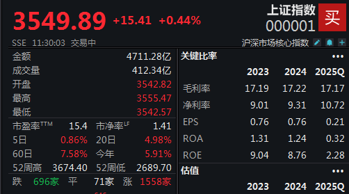 每经记者|刘明涛 每经编辑|赵云 7月21日,大盘高开后走势分化,沪指维持高位震荡,截至上午收盘,上证指数涨0.44%报3549.89点,深证成指涨0.29%,创业板指涨0.12%,沪深300涨0.24%,北证50涨1.7 ...