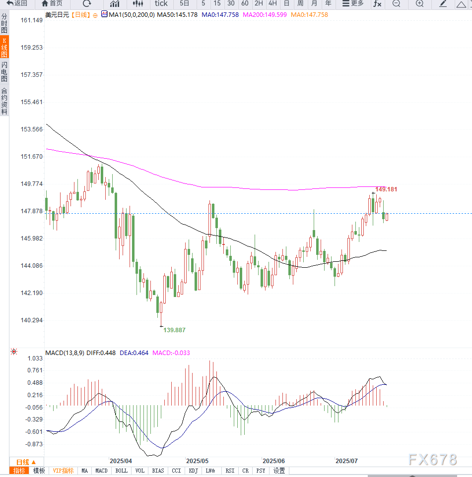 周二亚洲交易时段,美元兑日元(USD/JPY)汇率维持强势,交投于147.55附近。由于日本国内政治局势动荡以及财政政策前景不明,日元进一步走弱。美元则受益于避险需求及经济稳定性预期,吸引投资者买盘。 ![]() 日本首席关税谈判代表赤泽亮正周一表示,希望在8月1日前与美国达成某种形式的贸易协议。若谈判未能取得实质性进展,或引发对双边贸易关系进一步紧张的担忧,从而继续施压日元。 美联储转鸽,美元涨势受限 尽管美元兑日元短线走强,但美联储日益倾向鸽派的货币政策可能对美元形成中期压制。美联储理事克里斯托弗·沃勒(Christopher Waller)指出,尽管整体就业市场仍稳固,但私营部门就业增长乏力,支持7月降息预期。 “我们不应等到就业市场全面恶化后才采取行动。”——美联储理事Christopher Waller 根据CME FedWatch工具,目前市场押注9月份美联储降息的概率已达59%,预示投资者普遍对未来经济增长保持谨慎态度。 ![]() 当前美元兑日元汇率走势主要受到两大变量驱动:其一是日本国内政治局势及其财政政策走向,其二是美联储政策态度的调整。 从技术面看,美元兑日元正测试148.00关口的突破可能性,若日美贸易谈判迟迟无果,且日本财政政策持续模糊,则可能进一步推高汇率;但若美联储在7月或9月实际开始降息,美元上行动能或将受限,USD/JPY可能重返145.00下方震荡。 ![]() |