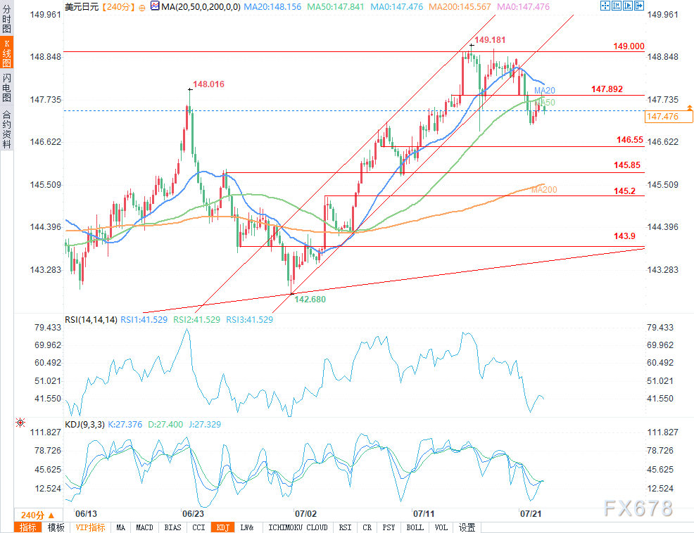周二 7月22日 美元兑日元呈现出震荡上行的趋势 价格从开盘后的相对低位逐步走高 并在午后达到日内高点 随后有所回落 盘中交投于147 455 465 涨幅0 06 近期美元 日元迎来为期三周的上涨 涨幅达4 5 从2025年7月 ...