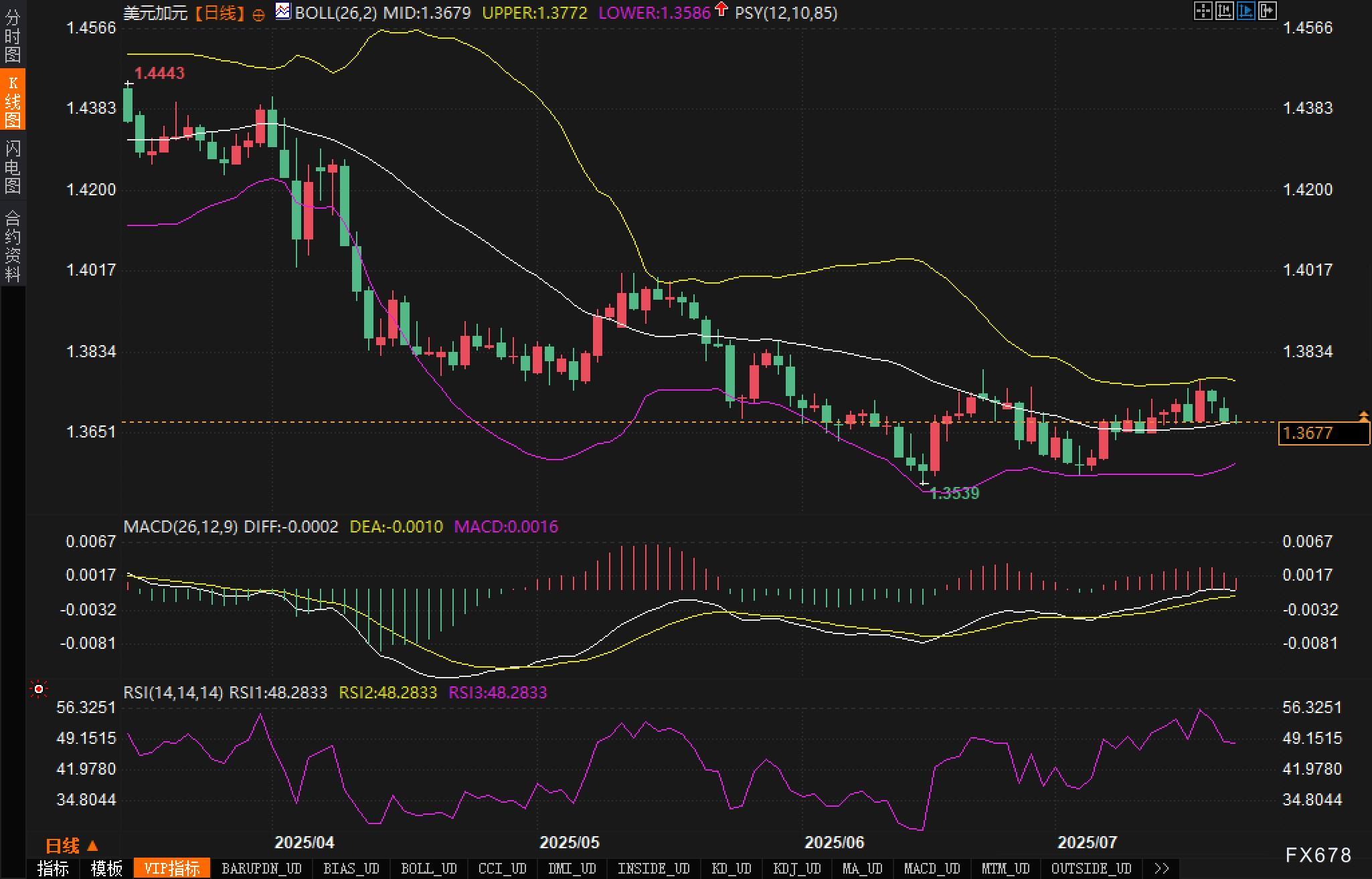 周二(7月22日),美元兑加元延续回撤势头,美市盘前汇价交投于1.3680附近。市场对美国关税政策可能冲击经济的担忧不断升温,美元承压。同时,加拿大经济数据表现尚可,但受制于国际原油价格疲弱,加元涨势受限。技术面显示布林中轨附近支撑正在接受考验,短线可能面临方向选择。 ![]() 随着8月1日关税决议临近,市场对美国未来经济政策走向保持高度警惕,美元受避险需求转移影响出现系统性回落。尽管关于特朗普要求其辞职的传闻已经降温,但围绕美联储总部改建成本的争议仍持续发酵,政治层面的不确定性持续施压美元。 相较之下,加元表现则相对坚挺。尽管油价依旧在1个半月低位徘徊,限制加元上涨空间,但加拿大国内经济数据显示韧性尚存。据Scotiabank报告,加拿大央行最新的商业前景调查显示,尽管企业普遍担忧未来贸易环境不确定,但预计经济将维持缓慢增长,仅28%的企业预计将陷入衰退,较前值的32%有所下降。 此外,利率市场定价表明,加拿大央行在本月月底降息的概率几近为零,短期货币政策的稳定也为加元提供支撑。 技术面: 当前日线K线图显示,美元兑加元整体处于震荡下行格局中,自高点1.4443回撤以来,汇价低点不断下移,形成一个较为清晰的下降趋势结构。当前汇价已自1.3539反弹至布林中轨1.3679附近,并出现多日盘整走势,反映市场多空力量趋于均衡。 ![]() MACD指标方面,快慢线维持金叉形态运行,柱状图略显收敛,动能趋于中性,尚未出现明确反转信号。RSI运行于48.28水平,处于中性区间,但自低位反弹趋势仍在延续,显示汇价短期虽承压,但空头动能已出现边际弱化。 市场情绪观察: 当前美元的弱势更多反映出市场对美国内部政策不确定性的担忧情绪。面对不断临近的关税实施窗口,市场情绪偏向谨慎,避险情绪回流至黄金、日元等传统资产,美元失去此前的强势地位。另一方面,加拿大虽面临油价下跌的拖累,但国内经济与央行政策维稳令市场对其基本面信心尚存。 值得注意的是,市场并未对美元形成明显恐慌情绪,交易员在1.37上方仍有部分防御性建仓行为,这也解释了为何汇价尽管下探,但回调幅度控制在合理区间内。 总体而言,市场情绪维持谨慎偏空格局,主要以观察美联储表态及政策演进为主。 后市展望: 短期展望: 在短线结构上,美元兑加元或继续围绕1.3670一线展开震荡整理。若汇价能维持在布林中轨上方,则仍有可能测试1.3772的布林上轨水平,突破该区间后目标可看向1.3834。反之,一旦跌破布林中轨并有效下破1.3650支撑,则空头将获得动能释放空间,进一步目标指向前低1.3586及1.3539区域。 交易员在当前价位面临技术面临界状态,需警惕方向选择所引发的波动性提升。 中长期展望: 中期来看,美元走势将高度依赖于关税政策落地与美联储货币政策走向。若美国经济数据因政策影响出现走弱趋势,不排除市场将加大对美元多头的清算,从而推动汇价向下突破年内低点。 相反,若政策层面对美联储干预减弱,美元获得喘息机会,加之加元受油价持续低迷打压,汇价则有可能回归震荡上行通道,重新测试1.38上方阻力区间。 中期汇价核心支撑位于1.3567-1.3586区间,该区域一旦失守,则美元兑加元将步入更深层次的回调通道。 ![]() |