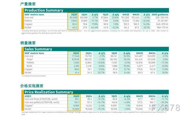 2025第二季度 铁矿石产量总计为8360万吨 同比增长300万吨 增幅为4 主要驱动因素为布鲁库图 Brucutu 运营区随着第四条选矿生产线启动试运行而取得强劲业绩 以及S11D矿区创下第二季度产量新纪录 球团产量总计为790万 ...