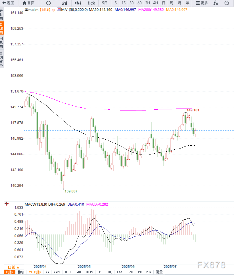 周三亚洲时段,美元兑日元一度回落至近两周低点,原因是美日宣布达成涵盖农产品与汽车的重大贸易协议,市场风险情绪上升推高日元。 ![]() 尽管美元从两周低点小幅反弹,但由于美联储降息路径尚不明确,加上总统公开施压美联储,引发市场对其独立性的担忧,这令美元多头不敢贸然追高。然而,在整体风险偏好背景下,美元仍相对强势,对日元形成压制,支撑了USD/JPY的短线走势。 目前美元兑日元在100日简单移动均线(SMA)附近获得支撑,该位置大致位于146.00-145.90区域,同时也接近月度涨势的50%斐波那契回撤位。虽然日线震荡指标(RSI等)尚处中性区域,但一旦有效跌破该区域,可能引发更大抛售,目标指向145.00心理支撑位。 据市场调查显示,一位技术分析师表示:“若USD/JPY能守住146关口,后市仍有望反弹并测试148以上水平。” 市场短期聚焦美国成屋销售数据以及全球制造业与服务业PMI初值表现,若数据利多美元或强化市场对美国经济的信心,则可能进一步打压日元需求。反之,若数据意外疲弱,避险情绪回归或支撑日元反弹。 ![]() 日元短期走势受制于国内政治风险与美日贸易协议利多抵消影响,在避险与风险偏好之间反复博弈。技术面显示,USD/JPY关键支撑已临近,若跌破146关口恐加剧下行压力,但只要维持在145上方,整体结构仍偏中性偏多。未来需密切留意美联储政策走向与日本政局演变对市场风险情绪的冲击。 ![]() |