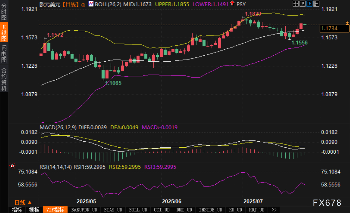 周三(7月23日)欧盘时段,欧元兑美元汇价温和回调,交投于1.1730附近,仍运行于布林带中轨上方。技术面显示短线趋势仍偏强势,基本面则因美欧贸易谈判不确定性使欧元涨势放缓。周四即将公布的欧洲央行利率决议将成为本周焦点,市场情绪转趋谨慎,汇价可能维持震荡整理格局。 ![]() 从基本面来看,欧元兑美元在本周初表现强劲,主要受益于市场对欧元区经济预期改善及美元阶段性回落的共振影响。然而,随着美日贸易协议细节公布,美国总统宣布与日本达成“重大协议”,包括将部分进口关税从25%下调至15%,并宣布日本将在美投资5500亿美元。这一消息提振美元人气,令欧元兑美元自高点回落。 与此同时,欧洲与美国之间的贸易谈判仍无实质性进展。尽管欧盟代表计划周三赴华盛顿展开新一轮磋商,但欧方也在筹备相关报复措施,反映出谈判风险犹存。市场对8月1日可能落地的30%关税忧虑再起,抑制了欧元的进一步上行。 此外,周三晚间将公布的欧盟委员会7月消费者信心指数预计将从-15.3小幅回升至-15,仍显疲软。若数据无明显意外,短线难以为欧元提供实质支撑。周四的欧洲央行利率决议将为后续行情定调,当前市场预期维持利率不变,但若会议基调偏鸽,可能压制欧元中期走势。 技术面: 从日线图来看,欧元兑美元整体呈上升趋势,自低点1.1065反弹以来,汇价逐步构筑抬高的底部与高点,并维持在布林带中轨及其上方波动。 当前布林带指标显示中轨位于1.1673,布林上轨为1.1855,下轨为1.1491,带宽适中,表明市场波动率尚未大幅收敛。分析认为汇价短线进入震荡整理阶段,支撑位关注1.17,该位曾为前期重要突破平台。 ![]() 相对强弱指数(RSI)目前位于59.29,处于中性偏多区间,但未触及超买线,说明汇价仍有一定上行空间。后续若RSI成功突破70,将强化多头动能;反之跌破50,则需提防回落风险。 从K线结构看,近期阳线主导,实体较饱满,具备典型的“多头排列”形态。分析认为目前虽略有回撤,但仍未出现明显反转信号,短期有望继续在布林带中轨至上轨之间震荡整理,等待关键事件驱动下一波行情方向。 市场情绪观察: 当前市场情绪整体偏谨慎。连续三日反弹虽提振多头信心,但美欧谈判僵局和欧央行利率决议在即,使得交易员更倾向于观望策略。从人气指标表现看,欧元的多头热度已开始降温,部分交易员正在减少欧元多头持仓,以规避事件风险。 同时,美日贸易协议的公布提升了美元短线人气,市场部分资金回流美元避险,亦对欧元构成一定压制。若欧盟与美国谈判破裂,且欧央行释放鸽派信号,市场情绪恐再度转向保守。 总体而言,当前为典型“前重大事件”的市场情绪特征,风险偏好下降,汇价进入盘整,情绪指标未现极端读数,后续需关注是否出现情绪拐点。 后市展望: 短期展望: 短期来看分析认为,欧元兑美元走势主要受制于1.1760的阻力压制,若后续能放量突破该位并站稳,或将进一步上探布林带上轨1.1855;下方支撑位分别关注1.17与1.1673,若失守中轨,回调风险将加剧,甚至可能测试1.1556的阶段性低点; 汇价短期仍以震荡偏多结构为主,但在关键基本面事件落地前,难以形成明确方向。 中长期展望: 从中期走势来看分析认为,汇价自低点1.0600区域反弹以来,已形成相对稳定的上升通道结构,若后续欧洲经济复苏预期加强、欧洲央行政策立场略偏中性,欧元或有望维持升势; 但若美欧贸易谈判恶化,或欧央行再次释放宽松信号,不排除汇价重回下行通道的可能。结构上交易员关注1.1855—1.1900一带是否形成“头肩顶”雏形,一旦构筑成功并跌破颈线位,将打开更大下行空间; 中期走势的关键在于欧央行的货币政策指引能否有效对冲外部风险,以及欧元区经济数据是否能够持续改善。 ![]() |