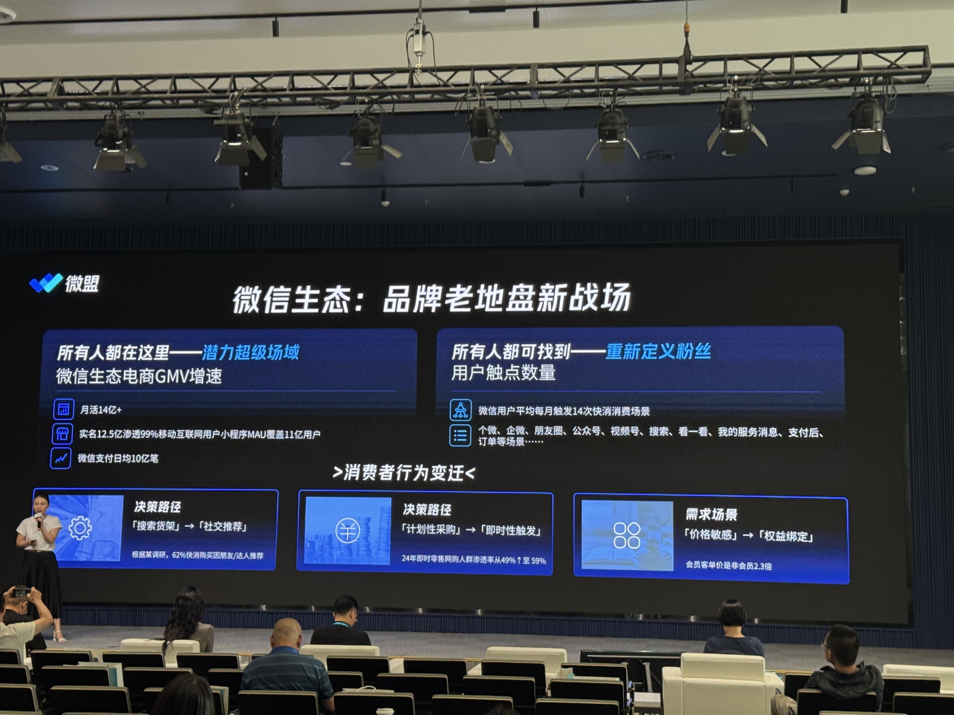 每经记者|张梓桐 每经编辑|裴健如 一向谨慎、克制的微信,正在全力加速电商业务布局。 今年5月,腾讯发布全员信,宣布对微信事业群(WXG,微信事业群)进行重大架构调整:正式成立电商产品部,全面负责微信内交易模式探索、交易基建及生态发展;将开放平台基础部更名为开放平台部,聚焦公众号与小程序的产品运营。 这一调整被业内视为腾讯加码微信电商生态的明确信号,但也有声音指出,在流量成本攀升、用户留存难的当下,电商市场增量空间有限,微信高调入局的底气又来自哪里? 7月23日下午,微盟企服生态运营部负责人王媛媛在微盟Weimob Day上海峰会期间接受《每日经济新闻》记者采访时表示:“当前微信电商生态的增量来自两部分:一方面是13亿实名用户中,大量是其他平台未触达的‘纯增量’;另一方面则是‘水下生意’显性化,过去社群、私域的交易正通过小店变现。” “它像下棋,一步步布点,用‘修路通衢’的方式输送用户。比如‘送礼’场景,把熟人分享流量变现到小店,同时重推商家供给,前端给获客能力,后端补商品服务。”王媛媛分析微信的增长逻辑时强调,“微信不走阿里巴巴、抖音‘大团队重运营’模式,今年的业务重点是‘产品基建+供给招商’,耐心布局,等棋子就位后再发力。” 王媛媛认为,微信电商虽然坐上牌桌的时间尚短,但凭借着13亿用户与生态协同,完全有能力与2024年GMV(商品交易总额)已达3.5万亿元的抖音电商实现同等体量。 微信社交流量导入电商生态 当前核心是解决“鸡生蛋”问题 从商业数据看,微信生态的商业化潜力已逐步释放。 腾讯2025年第一季度财报显示,公司实现收入1800.22亿元,同比增加13%;净利同比增长14%至478亿元。其中,营销服务业务收入同比增长20%至319亿元,主要源于广告主对视频号、小程序及微信搜一搜广告库存的强劲需求。 腾讯董事会主席兼首席执行官马化腾此前的表态已埋下伏笔。今年1月,微信小店“送礼物”功能上线时,他曾强调,“微信要用5年时间甚至更长时间去做一个电商生态连接器,发挥社交的力量,讲究慢工出细活,要做成精品”。 在电商大盘增量趋缓的背景下,微信生态凭借庞大用户基数与独特社交属性,也成为微盟等SaaS(软件即服务)企业及各类商家寻求增长的新蓝海。 腾讯与微盟关系紧密。从股权层面来看,腾讯是微盟集团股东。在业务协作上,双方呈现出深度耦合的态势。微盟旗下的微盟营销、微盟智慧零售等业务与腾讯旗下腾讯广告、腾讯智慧零售互相协同。无论是公众号、小程序,还是近年来兴起的视频号等风口,微盟都多次成为腾讯的首批合作伙伴。