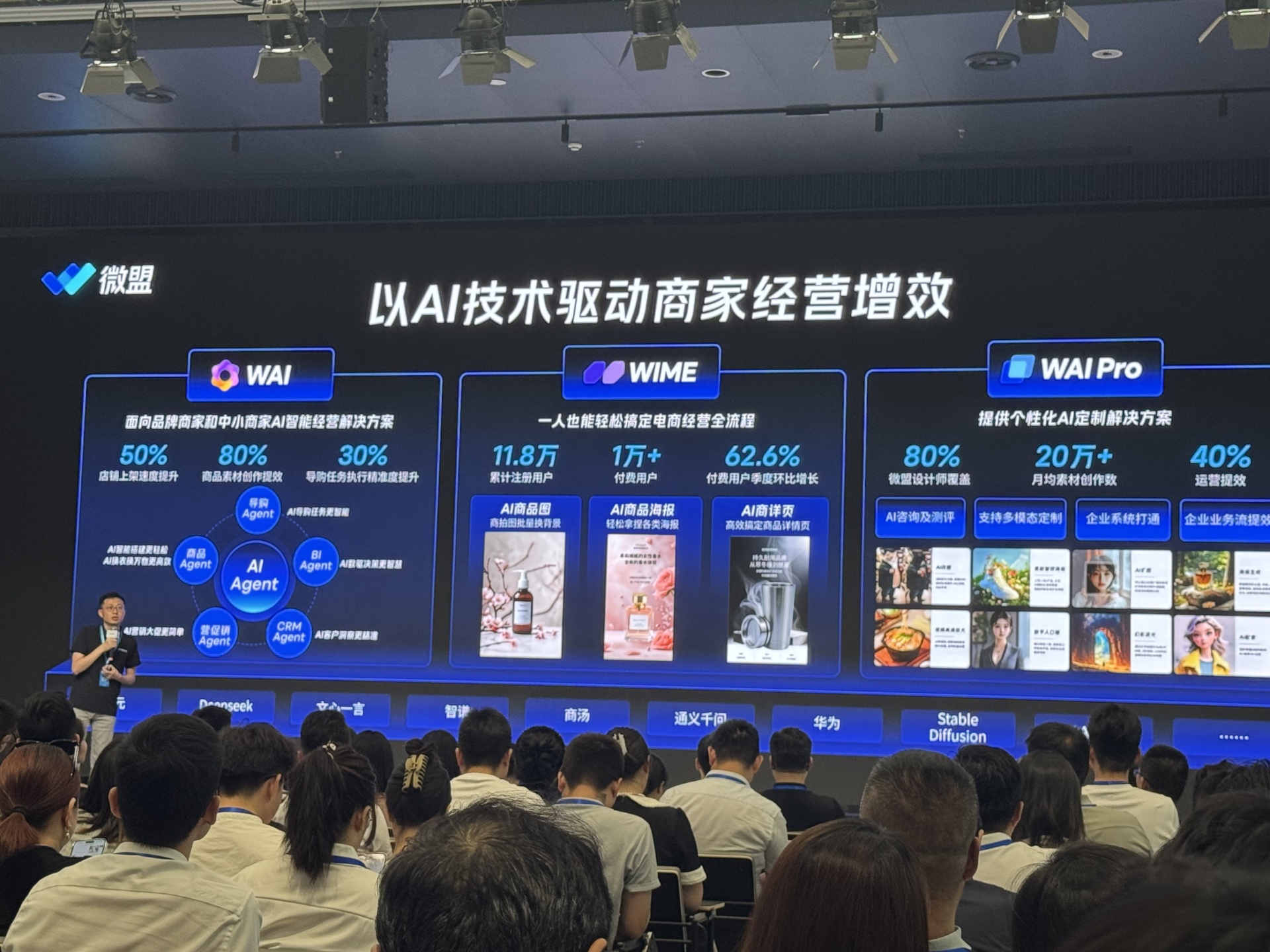 作为微信生态核心服务商,微盟针对不同商家制定差异化策略。对于头部品牌,王媛媛表示:“我们聚焦‘全域一体化经营’,打通小程序与小店的会员、商品系统。品牌既需要私域阵地降佣金,也需要小店获公域拓增量,两者结合有长期价值。” 针对中小商家,微盟依托AI(人工智能)工具降低门槛。“大量淘宝、抖音商家涌入微信,我们把AI产品接入小店服务市场,提供开店指导、流量激励。中小商家更关注快速起量,AI能帮他们高效完成上架、策划等工作。”王媛媛说。 对于微信的产品创新,王媛媛则透露:“继‘送礼’后,上半年推出‘一起买’试水拼团,下半年或有重量级产品。当前核心是解决‘鸡生蛋’问题——商家观望流量确定性,流量主等待优质供给。” 她表示,与其他电商平台相比,微信电商定力很强,正在耐心将社交流量导入电商生态。微信自去年8月小店上线后方向明确,以小店承接公域交易,联动私域形成全域经营。 谈及微信的“克制”,王媛媛解释称:“它要保障用户社交主场景不被打扰,13亿用户的流量疏导正以自然方式推进。不像其他平台搞大规模大促,微信‘618’‘双11’更像‘节点奖励’,用流量激励、平台券等支持,激励商家阶段营销,引导生态繁荣。” “抖音电商GMV已达3万多亿元,微信凭13亿用户与多场景生态协同,完全有能力实现同等或更高体量。微盟的机会是深度绑定生态演进,在营销、软件、运营服务上持续发力,与平台、商家共挖增长空间。”展望未来,王媛媛充满信心。 AI电商场景落地关键在于降低理解门槛 在紧密绑定微信电商生态的同时,如何在AI技术席卷各行各业的浪潮中,让前沿技术真正渗透到电商运营的毛细血管,成为微盟提供工具与服务时思考的另一核心课题。