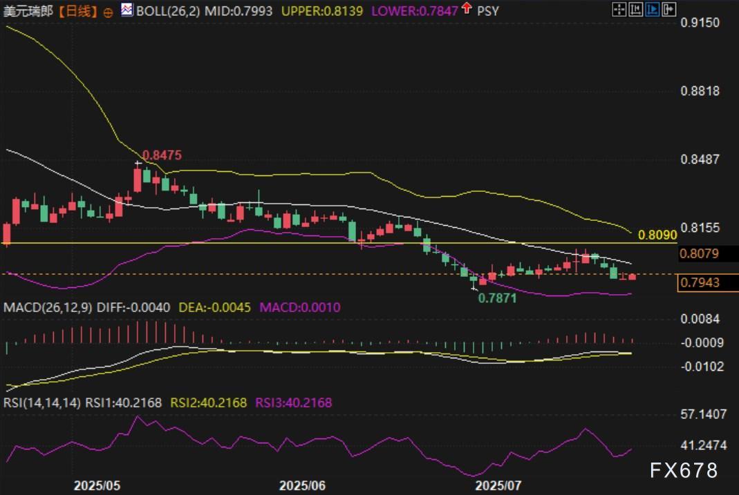 周四(7月24日),美元/瑞郎震荡走高,欧盘时段交投于0.7940附近。市场因欧美新贸易共识而暂时回避避险资产,瑞郎承压下行;但基本面不确定性与技术结构微妙演变,使得短期方向仍存悬念。 基本面: 本 ...