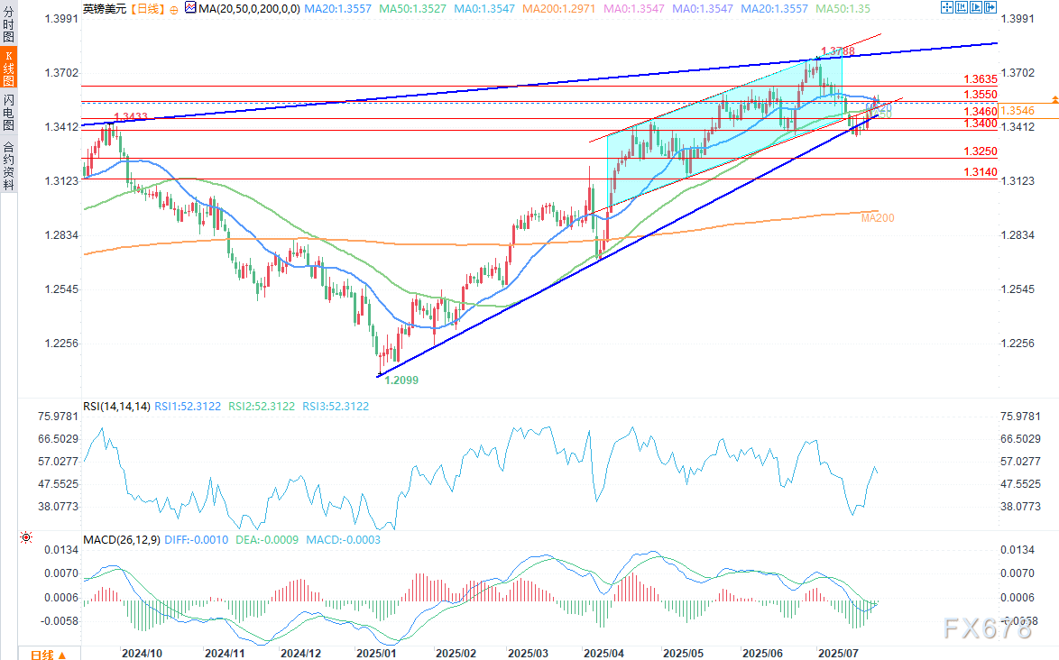 周四(7月24日),英镑/美元在当天的价格波动较为频繁。早盘时段,价格呈现出一定的上升态势,逐步走高,但随后价格开始在一定区间内震荡。接近15:30附近时,价格出现了快速下跌。 ![]() 若数据超预期,可能为英镑提供短期支撑。然而,通胀粘性(12月核心CPI为3.2%)和企业成本上升(最低工资上调7%、雇主社会保障缴款增加)可能限制零售销售反弹幅度,对英镑构成潜在压力。 预计英国央行8月降息 市场对美联储降息预期的减弱降低了美元利率优势,美元避险地位正在被重新评估,近期与10年期国债收益率的相关性下降,为英镑提供相对利差支持。若英国通胀持续超预期,英国央行可能推迟降息,支撑英镑。 脆弱的财政状况可能拖累英镑 2024年9月激进减税计划引发债务担忧,财政大臣或下调2025年增长预期并削减支出,进一步加剧经济不确定性。全球贸易紧张局势缓解(8月1日前贸易协议加速达成)降低了对英国出口的压力,可能为英镑提供一定喘息空间。 技术分析 ![]() 英镑/美元收复7月半数失地,小幅突破短期简单移动平均线(SMA)。技术面风险偏向上行,但1.3635附近仍有另一重挑战。 上周,受美元走弱支撑,英镑/美元避免了跌破1.3390–1.3400支撑区间的命运,目前正尝试站稳于1.3550附近的20日和50日简单移动平均线之上。 此次最新反弹保住了年内近14%的涨幅,但要强化看涨情绪,该货币对还需突破自2023年7月延伸而来的阻力线1.3635。若能果断突破1.3787的三年高点,或为进一步迈向1.3900整数关口铺路,该水平也是短期看涨通道的上轨所在。突破这一水平后,价格可能在先前跌势的161.8%斐波那契扩展位1.4070附近稍作休整,随后有望冲击1.4200这一心理关口。 相对强弱指数(RSI)和MACD指标均显示上行动能或持续。不过,随机震荡指标已飙升至超买区域,需保持警惕。 无论如何,除非价格跌破1.3360支撑区间,否则空头可能继续观望;若跌破该区间,1.3245区域将成为焦点。进一步下跌或引发更深幅回调,目标指向2025年上涨趋势的38.2%斐波那契回撤位1.3140。 简而言之,若英镑/美元能在1.3550上方站稳脚跟并突破1.3635阻力位,多头短期内可能继续掌控局势。若未能做到这一点,可能暗示此次突破为假突破,并增加形成看跌“头肩顶”形态的风险。 北京时间18:09,英镑/美元报1.3544/45,跌幅0.25%。 ![]() |
