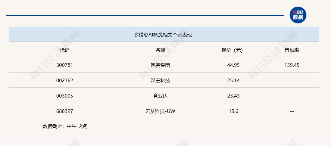 每经记者|刘明涛 每经编辑|赵云 7月25日,大盘低开后震荡调整,截至上午收盘,上证指数跌0.34%报3593.38点,深证成指跌0.29%,创业板指跌0.32%,北证50涨0.45%,科创50跌0.22%,中证A500跌0.45%,A股半日成交1.12万亿元。 资金面,央行公告称,7月25日以固定利率、数量招标方式开展了7893亿元7天期逆回购操作,操作利率1.40%,投标量7893亿元,中标量7893亿元。Wind数据显示,当日1875亿元逆回购到期,据此计算,单日净投放6018亿元。 消息面,海南省人民政府办公厅印发《海南自由贸易港加工增值免关税政策项下海南自产货物认定管理暂行办法》,旨在保障加工增值免关税政策实施,鼓励产业发展。该办法适用于海南自产货物的认定管理,定义了海南自产货物为在海南自由贸易港生产加工并被加工增值备案企业采购使用的货物。办法明确了认定管理的原则、程序和标准,以及相关单位的职责。海南自产货物企业需通过申请认定,其货物方可被认定为海南自产,享受相关政策优惠。 上海证券交易所党委委员、副总经理王泊表示,“科创板八条”发布以来,新发布16条科创板指数,指数总数达到32条,境内外跟踪科创板指数的产品规模超2800亿元,科创板已成为A股指数化投资比例最高的板块。 板块方面,多模态模型概念半日领涨,因赛集团20%涨停,竞业达同步封板,云从科技涨近10%。AI应用端普遍回升,汉王科技封板,易点天下、鼎捷数智涨幅居前。CRO概念继续演绎估值回归,博腾股份、康龙化成盘中涨超10%。 多模态模型及Agent的持续更新迭代,以及互联网大厂对AI的持续投入,将推动AI应用在内容创作、商业活动等垂直领域加快渗透,并拉动推理算力需求,AI对于业绩的赋能将进一步显现。 这里,通过整合天风、安信、国信等10余家券商最新研报信息,为粉丝朋友带来4家公司简介,仅供参考。 1、因赛集团 公司部分业务持续增长且海外增速显著有望成为第二增长曲线,大力研发的同时产品逐步商业化。 ——华金证券 2、汉王科技 公司拥有完备的文字、图像、语音、生物特征、视频等多模态识别技术体系,并已在端侧中集成了多个AI Agent产品。DeepSeek-R1/V3也深度融入电纸本全线产品。 ——华泰证券 3、竞业达 公司在行业大模型、AIGC应用、实验实践教学及教育大数据应用等关键领域投入和布局,实现AIGC在教育中的深度应用。 ——太平洋证券 4、云从科技 公司深化与国家网安基地智算中心的合作,协同推进DeepSeek平台相关部署,围绕“算力基建+顶尖模型+场景应用”构建三位一体生态体系,稳步强化大模型的基础能力支撑。 ——华创证券 |