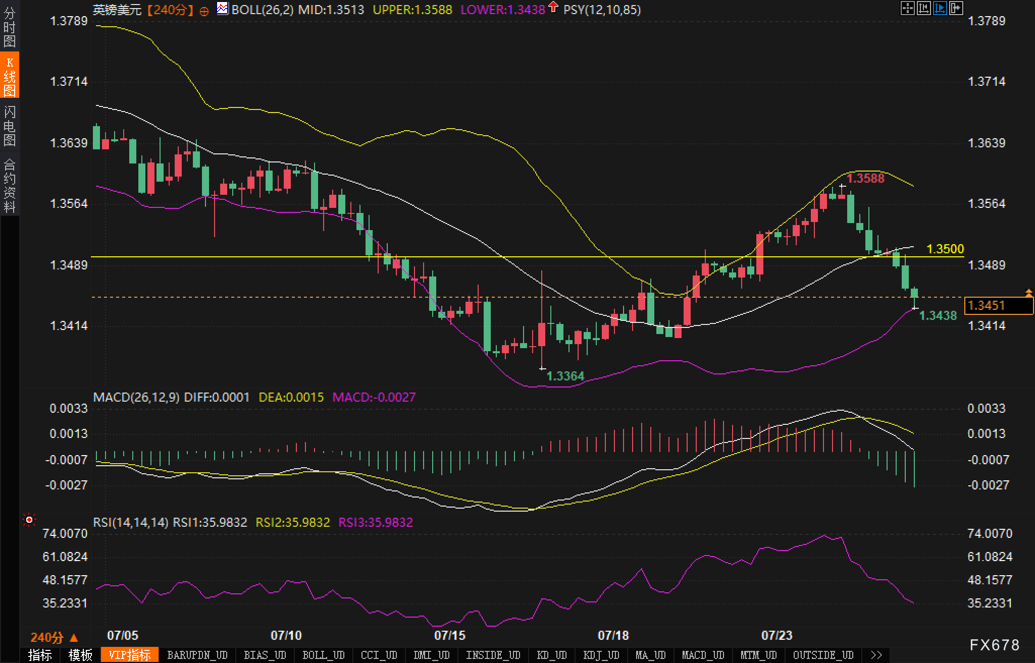 周五 7月25日 英镑 美元延续弱势表现 美市盘前在1 3450附近震荡整理 汇价受到多重基本面因素拖累 呈现明显的调整态势 市场对美联储货币政策预期的变化以及英国经济数据的疲软表现 共同推动了汇价的下行 基本面英国 ...
