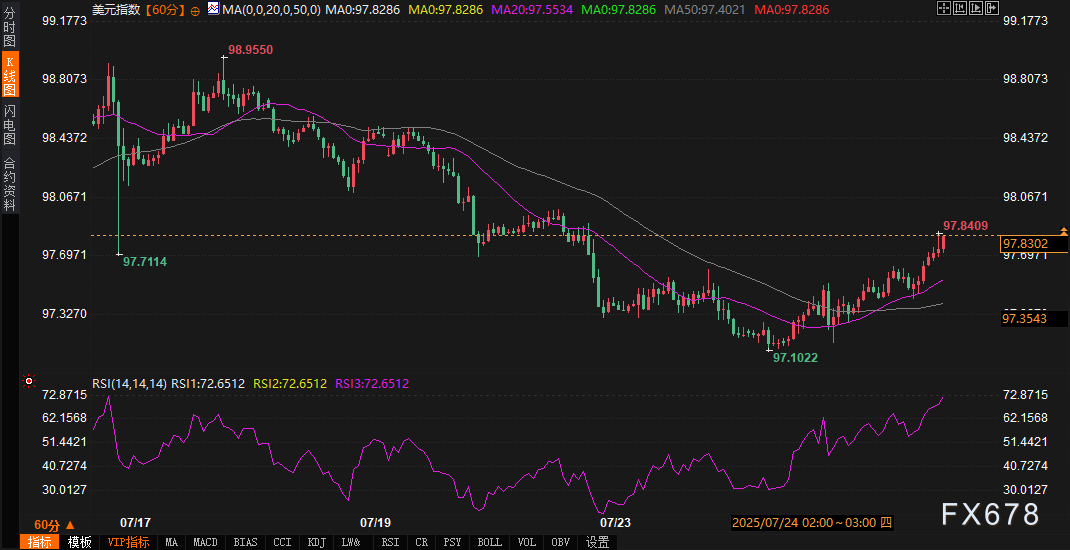 周五 07月25日 外汇市场呈现典型的震荡修复行情 截至当前 美元指数日内微涨0 31 但周线级别仍承压于98整数关口 市场焦点正从美联储政策预期转向美国经济数据质量引发的信任危机 这一因素通过短期情绪传导与中期趋 ...