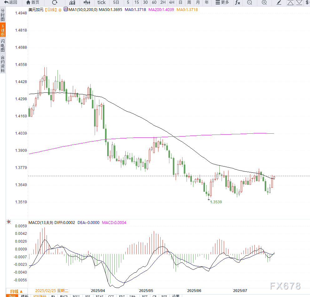 美欧达成贸易协议,美元承压下行 ![]() 加拿大方面则表现出强硬立场。加拿大总理卡尼此前接受采访时指出,加方“不会接受不公平的协议”,更不会为了赶在最后期限前签署而草率妥协。双方立场分歧令美加贸易不确定性加剧,短线支撑加元情绪。 与此同时,市场传出美国与亚洲大国或将延长当前的关税三个月的消息。市场寄望磋商能够稳定现有局势,进一步提升风险偏好。 此外,市场目前正聚焦美联储本周三的利率决议。广泛预期美联储将维持基准利率于4.25%-4.50%不变,但关键看点在于FOMC会议声明与新闻发布会上是否透露未来降息意向。 据CME FedWatch工具显示,市场对9月降息的预期概率达62%,若美联储暗示启动宽松周期,则美元可能面临进一步下行压力。 从日线图来看,USD/CAD在连续反弹受阻后,于1.3790附近形成顶部结构,当前跌破1.3730短线支撑位,行情转入整理偏弱格局。MACD快慢线死叉下行,动能柱翻绿;RSI也跌破50中轴,显示当前空头主导节奏。 若汇价持续受压于1.3740下方,短线可能测试1.3665(20日均线支撑)及1.3600整数位,后者也是前期多空分水岭。一旦有效下破,行情可能延伸至1.3535区域;反之,若能重返1.3750上方,或迎来阶段性技术反弹。 ![]() 在美欧协议缓和全球贸易担忧、美加谈判受挫的多重背景下,美元避险需求显著降温,短期内不利于USD/CAD继续上行。加元借助原油市场企稳与情绪修复小幅走强。 然而,考虑到美联储政策尚未明朗,待FOMC会议后再顺势操作。中期趋势需关注1.3600关键支撑是否失守,若跌破则空头趋势将进一步确认。 ![]() |