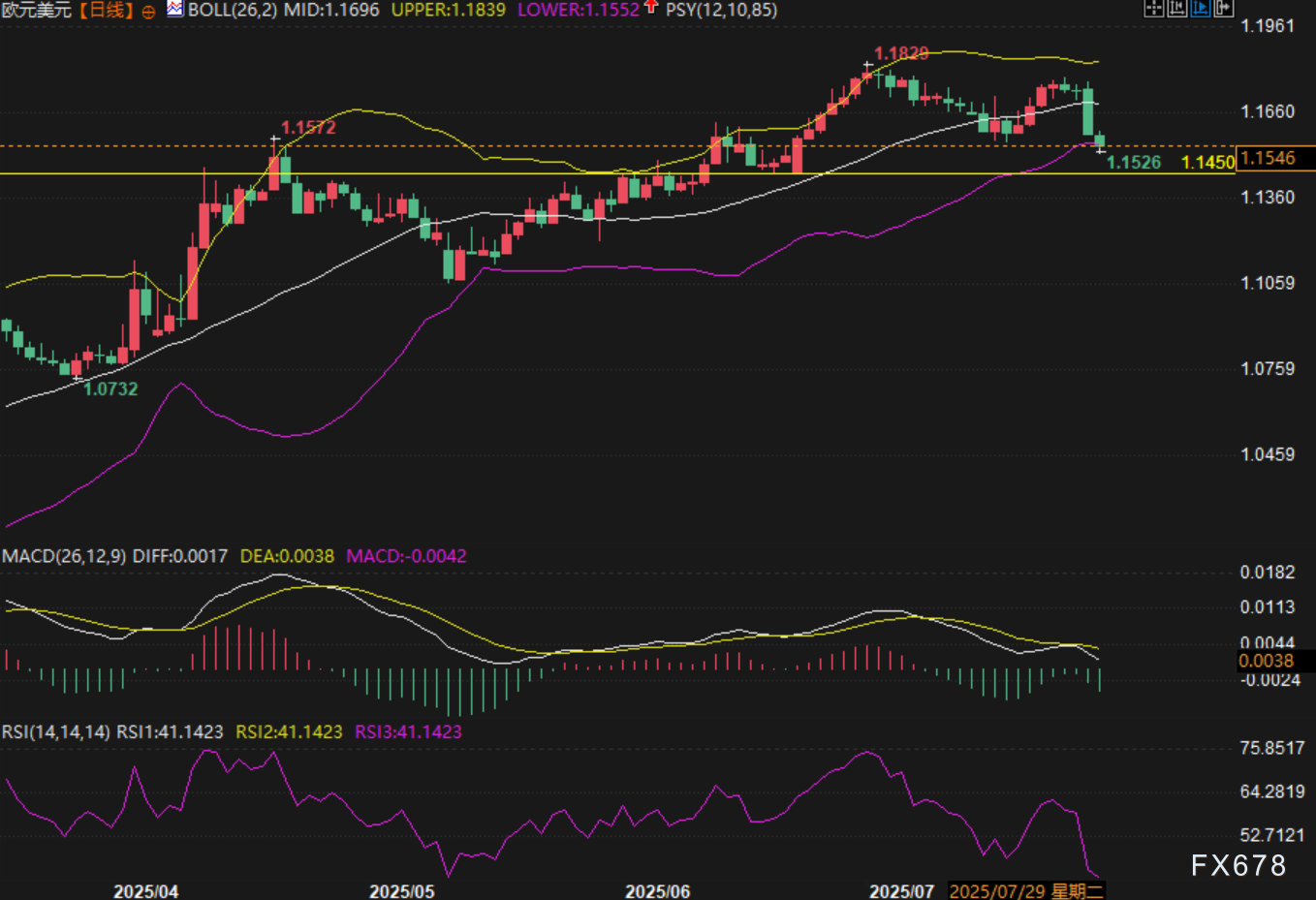欧元/美元在经历上周震荡后出现大幅下挫,汇价跌破1.1600心理关口并触及布林带下轨,周二(7月29日)欧洲时段交投于1.1550附近。短期内市场焦点聚集于本周即将公布的美联储利率决议和非农就业数据。分析认为若美联储释放鹰派信号并伴随强劲的就业数据,美元或继续走强,推动欧元跌向更深的支撑区间。 ![]() 欧元/美元本轮回落并非偶然,而是受到三大宏观驱动的叠加打压。 第一,欧盟与美国的贸易协议提振有限。尽管15%的关税协议短期内缓解了部分不确定性,但市场迅速意识到这一举措并未从根本上改变欧洲经济疲弱的格局。资本持续外流,欧洲内部需求依旧低迷,限制了欧元反弹的可持续性。 第二,利率差距对欧元形成持续压制。欧洲央行将基准利率维持在2.15%,且缺乏进一步加息的明确信号;与此同时,美联储市场预期利率维持在4.50%,形成高达235个基点的利差。这种显著的利率优势令美元成为资本追逐的目标,而欧元因此处于被动承压局面。 第三,美国经济数据不断超预期。近期的初请失业金人数与耐用品订单数据均显示出经济韧性。强劲的数据进一步强化了美联储维持紧缩立场的合理性,也刺激了美元买盘,令欧元的下行压力持续加大。 总体而言分析认为,基本面格局仍明显偏向美元;除非未来美联储政策基调出现意外转向,欧元短期内恐难迎来实质性修复。 技术面: 从欧元/美元日线图来看,近期走势已经由前期的震荡上行逐步转向明显的下行趋势。 汇价此前在1.1829形成阶段高点后展开回落,连续跌破布林中轨与60日均线支撑。目前已触及布林下轨(1.1552),并逼近1.1526的关键支撑位。分析认为若失守该位,空头有望进一步下探至1.1450区域。 ![]() 相对强弱指数(RSI)跌至41附近,虽未触及极端超卖区间,但已呈现持续下行趋势。若跌破40水平,市场或进一步加剧抛售压力。 综上所述分析认为,技术面信号与基本面共振,汇价短线仍以空头为主导。 市场情绪观察 从市场心理层面来看,近期欧元/美元走势的快速逆转已显著冲击多头信心。在此前突破1.1780流动性区间后,市场预期延续上行,但随即出现的急速回落表明该突破属于“假突破”,令多头陷入被动。 市场共识正在快速转向空头一方,恐慌性抛售迹象开始显现。成交量与波动率双双提升,资金明显流向美元资产。市场情绪指标暗示,短期内恐惧情绪主导,反向资金涌入美元避险资产,令欧元承压。 后市展望 短期展望 分析认为若美联储在本周利率决议中释放鹰派信号,同时非农数据继续表现强劲,欧元/美元极可能跌破1.15支撑,直指1.1450一线。若跌破该位,将触发更多止损单,空头目标或扩展至1.1360区域。 中期展望 分析认为若未来美联储政策逐步转向中性,或美国经济动能显现放缓迹象,欧元/美元才可能在中期寻得企稳机会,并有望逐步修复跌势。但在欧洲央行货币政策依旧温和的背景下,任何反弹或将受制于1.1660–1.1730区间的密集阻力。 多头机会 分析认为若美联储释放鸽派信号,叠加美国就业数据不及预期,欧元可能从当前低位展开技术性反弹。上方首个反弹目标为布林中轨1.1696,若突破并企稳,将有望进一步挑战1.1780区域。 空头延续风险 分析认为若利率差距与基本面格局未有改善,欧元/美元下行趋势大概率延续,市场或步入更深调整周期。 ![]() |