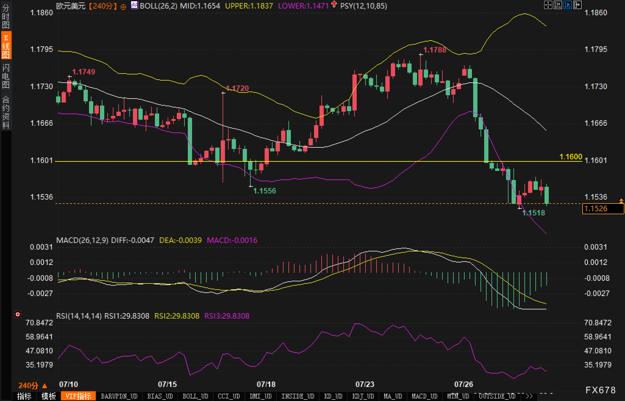 周三 7月30日 欧元 美元延续弱势格局 美市盘前交投于1 1530水平附近 汇价在突破关键技术支撑后呈现加速下行态势 尽管欧元区公布了超预期的GDP数据 但市场对美欧贸易协议后续影响的担忧情绪持续发酵 欧元面临多重压 ...