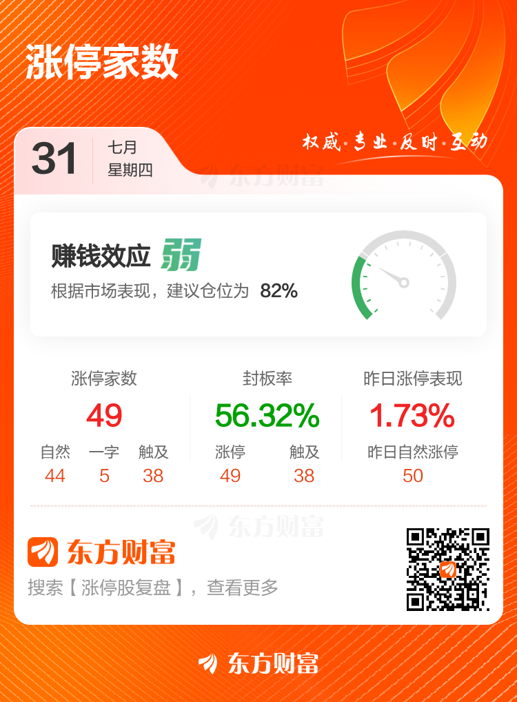 今天沪指跌1.18%,深成指跌1.73%,创业板指跌1.66%,今日大盘成交额1.94万亿,较上个交易日放量917.56亿。 涨停个股数量方面,今日共计49股涨停,另有38只个股盘中一度触及涨停,封板率56.32%。 ![]() 个股方面 ![]() 免责声明:本文基于AI生产,仅供参考,不构成任何投资建议,据此操作风险自担。