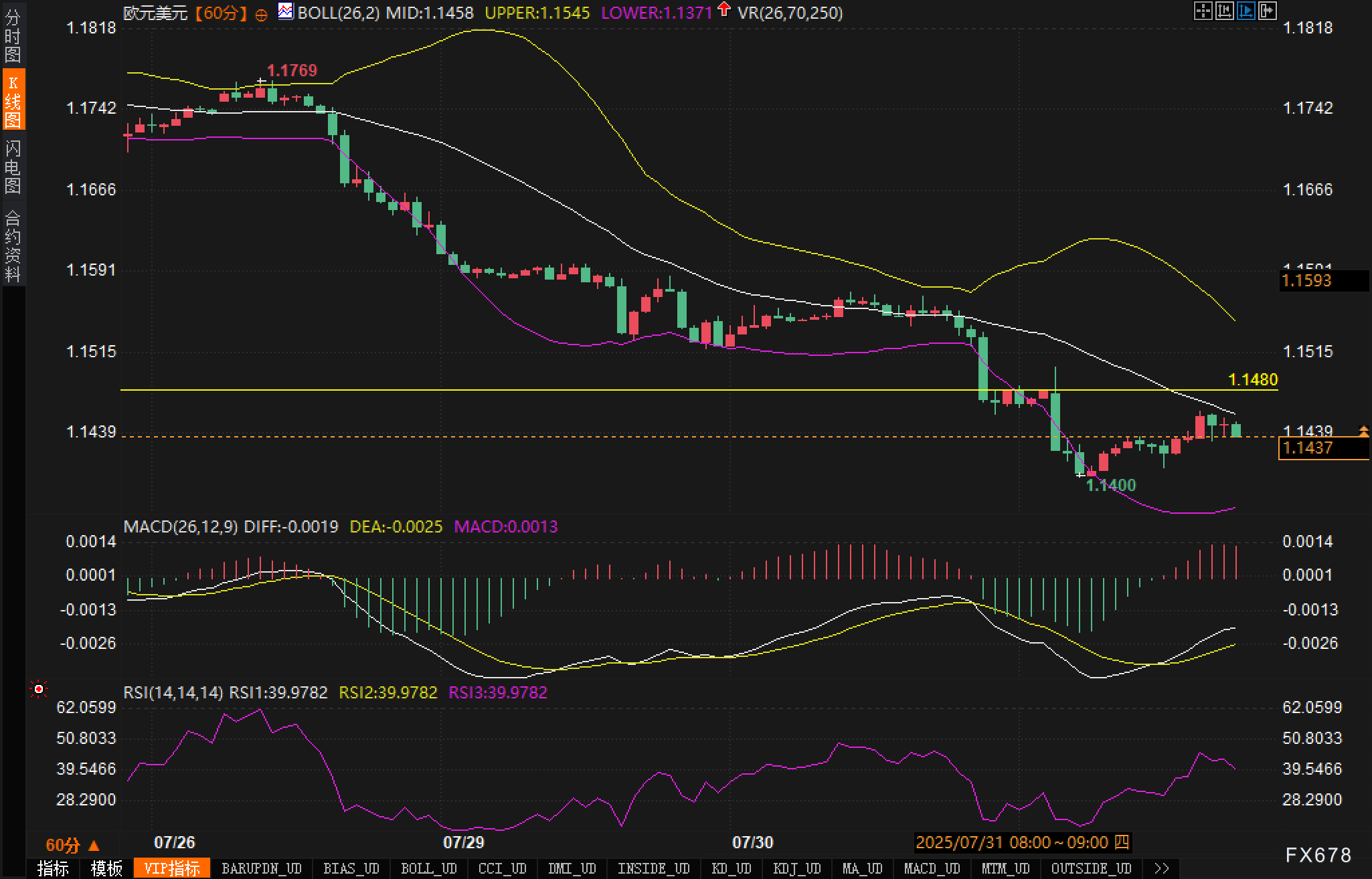 欧元/美元汇价近期持续承压,最低探至1.1400一线,创下近七周新低。尽管欧元区公布的第二季度GDP同比增长0.1%,略好于预期,但仍不足以抵消市场对欧元区经济动能的担忧。与此同时,美国强劲的宏观数据及美联储释放的鹰派信号使美元获得支撑,欧元仍旧承压。 ![]() 欧元区最新公布的二季度GDP数据显示,环比增长0.1%,尽管好于此前预期的零增长,但从前值0.6%的下滑幅度来看,经济动能显著放缓。市场原本寄望欧元区经济能从关税扰动中回稳,然而增长乏力叠加通胀走低的事实,加剧了市场对欧洲央行货币政策转向鸽派的预期。尽管目前市场仅计入了15个基点的年内降息预期,但随着经济数据持续疲软,进一步定价空间依然存在。 相比之下,美国方面的数据展现出强劲的复苏动力。美国第二季度GDP年化增速高达3.0%,远高于市场预期的2.4%。同时,ADP就业报告显示私营部门新增就业10.4万人,也超出市场预期。在此背景下,美联储如期维持政策利率在4.25%-4.50%不变,尽管有两位官员偏向降息,但主席鲍威尔在新闻发布会中未明确释放9月降息的倾向,强调“通胀路径仍具不确定性”,强化了市场对“更高更久”的利率定价。 在基本面对比上,欧元区经济放缓与美国经济韧性形成鲜明反差,驱动美元指数维持高位,欧元/美元汇价持续承压。 技术面: 从小时K线图来看,欧元/美元自1.1769高点开始加速下行,呈现明显的下跌趋势。汇价持续运行于布林带中轨与下轨之间,中短期趋势线向下发散,显示空头主导格局尚未逆转。 ![]() MACD指标显示,当前DIFF与DEA仍在负值区域,说明当前反弹为弱势技术性反弹。RSI指标当前位于39.97,处于弱势区间,未见超卖修复迹象,也缺乏明显背离支撑,价格在空头惯性下仍有进一步下探风险。 市场情绪观察: 市场情绪显著偏向防御。汇价从1.1769高点下挫后,市场未能形成有效多头防线,反弹动能不足,表明市场当前仍处在空头主导状态下。伴随美元因经济数据改善和美联储鹰派立场持续获益,市场整体仍存在“顺趋势”交易心态。 此外,从期权市场来看,短期期权隐含波动率上升,表明市场对未来几日的价格波动存在较高预期,反映交易员对下行风险保持高度警觉。同时,从头寸角度分析,尽管美元空头在上周出现明显回补,但当前市场整体仓位并未极度倾斜,仍留有进一步美元多头发力空间。 后市展望: 短期展望:分析认为若晚间公布的美国6月PCE物价指数数据维持温和上行,叠加周五即将公布的7月非农就业数据进一步验证经济韧性,美元有望继续获得支撑,汇价或延续震荡下行,关注1.1400整数关口支撑有效性。一旦失守,将进一步测试1.1300的支撑区间。 中期展望:分析认为若未来几周欧元区数据持续疲软、通胀预期降温,或促使欧洲央行在9月会议释放更为明确的鸽派信号,届时欧元面临的系统性贬压将加强。不过,从季节性与技术节奏看,8月行情往往波动收敛,1.1300区域或构筑阶段性底部。 多头情景下:分析认为若美方数据不及预期,且市场对欧洲央行按兵不动的预期升温,汇价短线有望震荡回升,关注能否突破1.1480压力位,进一步测试1.1550上方阻力。 空头情景下:分析认为若非农就业数据强劲且PCE通胀不降反升,美元或再迎一轮买盘高潮,汇价将加速下探1.1300,甚至存在探至1.1200的潜在空间。 ![]() |