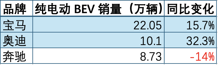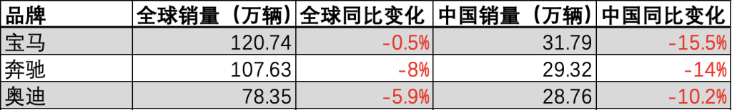 传统豪华车的日子依旧不好过。 当地时间7月28日,德国豪华汽车品牌奥迪披露了2025年上半年交付数据,至此,三大传统豪华品牌BBA(奔驰、宝马、奥迪)的销量均已出炉。其中宝马集团以120万辆的销量领跑,并录得三者中最小的降幅。 从全球整体来看,BBA三大品牌销量均有不同程度下滑,但宝马和奥迪在新能源领域表现出一定韧性。中国仍是BBA最大单一市场,但在关税、竞争加剧等多重因素下,该市场压力显著上升。 ![]() 宝马依然领跑全球豪华市场 据宝马官方披露,其在1-6月共交付新车约120.74万辆(含BMW、MINI与劳斯莱斯品牌),同比微幅下降0.5%。其中,BMW品牌为107.08万辆,同比下降2.3%;MINI品牌实现逆势增长,交付13.38万辆,同比增长17.3%。 从地区市场来看,欧洲仍是宝马增长的主阵地。宝马集团在欧洲市场上半年交付49.78万辆,同比增长8.2%,其中德国本土交付13.52万辆,同比增长3.6%。 相较之下,中国市场的表现则明显承压。数据显示,宝马在中国上半年共交付新车31.79万辆,同比大幅下降15.5%。 2025年上半年宝马在北美交付19.31万辆,同比增长2.7%;整体北美区域增长约3.4%。 奔驰销量显著下滑,其在亚太地区表现尤为疲软。 官方数据显示,奔驰上半年在全球范围共交付汽车约107.63万辆,同比降幅约为8%。其中乘用车销量为90万辆,同比下滑6%。 在区域市场方面,奔驰在全球主要市场均出现不同程度的回落。在欧洲市场,销量为30.83万辆,同比降低3%;在亚洲市场,销量为38.9万辆,同比降低11%;在北美洲市场,销量为15.75万辆,同比降低14%;在世界其他地区,销量为 45.1%,同比增长20%。 在其全球最大单一市场——中国,奔驰上半年交付29.32万辆,同比下降14%。其中第二季度更是同比下滑19%,仅为14.04万辆。 奔驰指出,全球关税政策变化,以及部分车型正处于换代周期,是影响交付表现的关键原因。 奥迪方面披露的数据显示,2025年上半年,奥迪品牌的全球销量为78.35万辆,同比下降5.9%。 分地区来看,2025年上半年,中国仍是奥迪全球最大的单一市场,共交付约28.76万辆,同比下滑多达10.2%。 在欧洲市场,奥迪在德国本土表现相对稳健,上半年交付约10.33万辆,同比微增0.7%;在德国以外的欧洲市场,奥迪共交付约23.15万辆,同比下降4%;北美市场方面(不含墨西哥),奥迪上半年交付约9.87万辆,同比减少9%;其他海外市场交付量为6.24万辆,同比增长3.2%。 新能源战线:宝马领跑,奥迪紧随,奔驰承压 在新能源转型方面,宝马表现最为强劲。新能源车型为其贡献了不小的增量。 上半年,宝马全球电动化车型累计交付31.89万辆,同比增长18.5%。其中,纯电车型销量达22.05万辆,同比增长15.7%;插混车型则实现28.9%的高增长,交付量为9.83万辆。 宝马集团方面指出,其纯电车型的增长主要由i4、iX1与iX车型驱动,而插混车型在欧洲市场表现尤其强劲。 宝马方面亦重申了其2025年电动车销量将同比增长至少50%的目标,并预计至2026年,纯电车型将占其全球销量的三分之一。 奔驰的电动化困境更为明显。奔驰在上半年的纯电动汽车交付量为8.73万辆,同比下滑14%。今年第一季度,奔驰高层公开表示,EQ系列将不再独立运作,回归到主流产品序列。这被市场普遍解读为EQ战略失败的信号。 ![]() 奥迪则介于二者之间:奥迪品牌纯电动(BEV)车型累计交付超过10.1万辆,同比增长32.3%。 其中,中国市场纯电车型交付7897辆,同比下滑23.5%;北美市场纯电车型交付量为1.3万辆,同比略降4.2%;德国市场纯电车型销量达2.05万辆,同比大幅增长76.2%;欧洲市场纯电动车型销量达5.34万辆,同比增长45.6%,反映出欧洲电动车需求持续上升;其他海外市场交付量为6608辆,同比增长47.4%。 尽管全球销量面临一定下行压力,奥迪在电动车转型方面也已初显成效,尤其在欧洲市场的增长势头尤为突出。不过,在电动品牌更为强势的中国和美国市场,奥迪依旧面临不小压力。 BBA销量持续下滑,正是传统豪华品牌在电动化转型中“失速”的缩影,同时也是中国汽车市场竞争激烈的印证。 在中国市场上,奔驰、宝马、奥迪在上半年的跌幅分别为14%、15.5%、10.2%,显著拉低整体业绩。 BBA在销量报告中提到的关税、换代等问题虽是现实因素,但更深层的挑战来自中国本土高端新能源品牌的崛起。华为鸿蒙智行、理想、蔚来等新势力正对30万元以上市场发起围攻,直接切走BBA的传统优势份额。 乘联分会数据显示,2025年上半年,包括奔驰、宝马、奥迪、凯迪拉克等在内的传统豪华品牌在华零售销量为117.85万辆,同比下滑11.8%。以价格维度来看,中国市场30万元及以上的高端车型零售销量为132.67万辆,同比下滑2.3%,降幅远小于传统豪华品牌的整体表现,其中自主品牌的增量起到了关键作用。