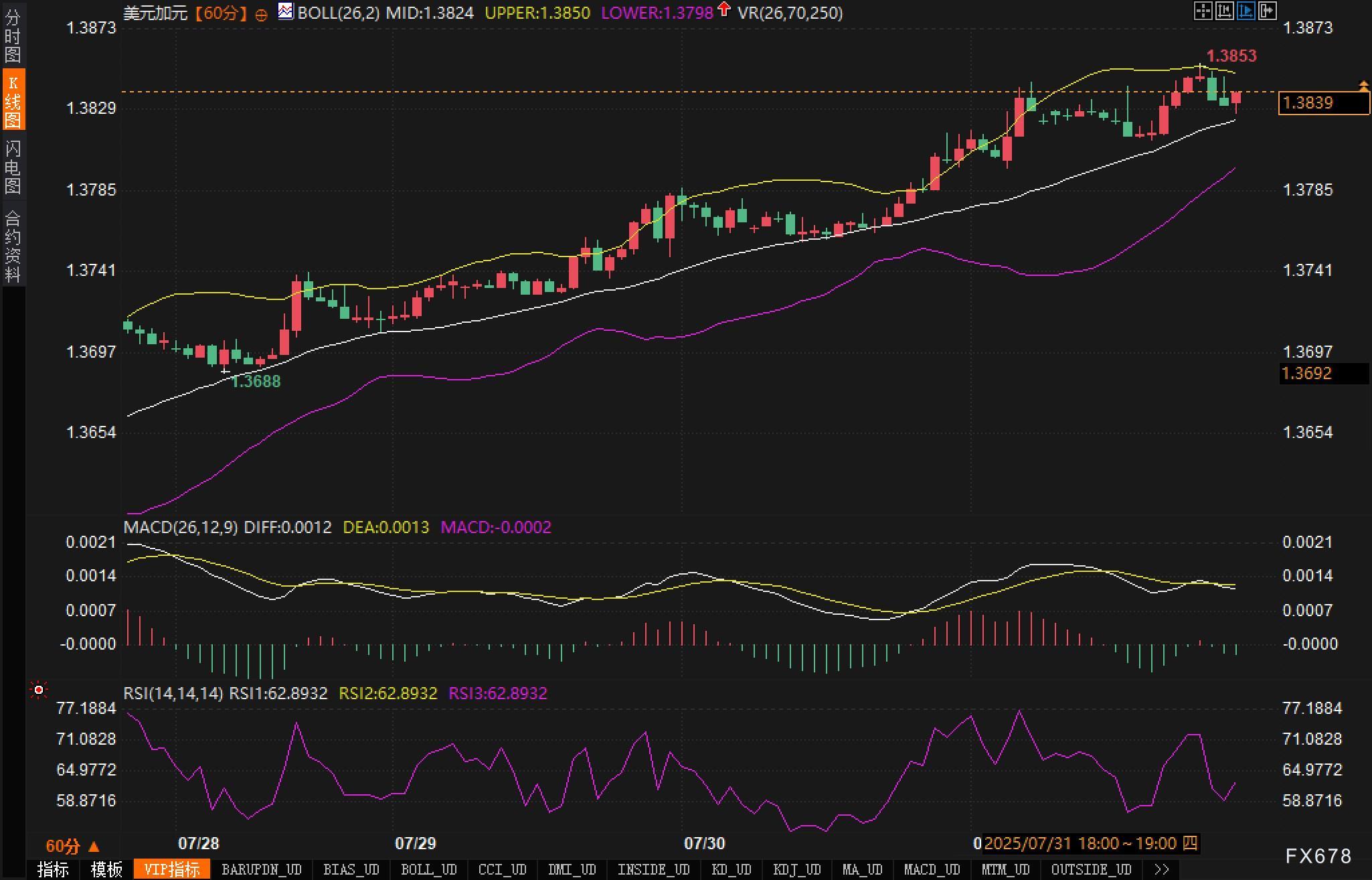 周四(7月31日),美元兑加元(USD/CAD)汇价北美时段交投于1.3840附近。盘中一度触及1.3853,为近两个月新高,显示出加元连续第六个交易日承压下行。当前市场焦点集中在8月1日关税落地前的贸易不确定性;以及美国经 ...