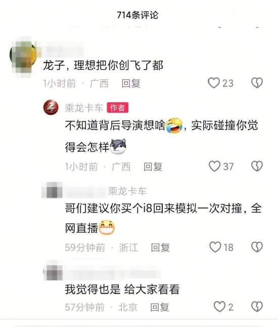 同辰科技讯 7月31日晚间消息,理想汽车近日发布首款纯电SUV理想i8,并在当天的发布会上播放了该车与重卡连环撞击测试视频。 在官方的介绍中,i8车型以国家安全测试标准1.75倍的速度61公里/小时刮底刚性障碍物,电池包底护板结构完整。正面对撞(100公里/小时)、侧面碰撞重卡测试后,A柱、B柱、C柱、门梁均无变形,9个气囊全部打开,电池包无漏液、无起火,车门自动解锁、门把手自动弹开。 在该碰撞测试视频中,理想i8车型和重卡正面对撞时,重卡四个车轮弹起,驾驶室和后货箱出现明显的分割。该测试在互联网引起不少争议,并被网友发现该测试卡车品牌为乘龙卡车。但在理想官方抖音最新发布的碰撞视频中,该重卡车辆车标已被打码。 发布会过后,有网友前往乘龙卡车官方抖音号留言,有网友建议乘龙卡车,“你买个i8回来模拟一次对撞,全网直播。” 面对网友的质疑,乘龙卡车官方抖音回复网友表示法务部门正在处理中。乘龙卡车官方账号还回应称,“被摆了一道,聪明人一眼看出假。”“不知道背后导演想啥,实际碰撞你觉得会怎样。” 针对此事,理想汽车方面向同辰科技回应称,理想i8和卡车撞击的超级实验,是基于用户真实交通会车场景的模拟,全权委托专业的第三方检测机构测试认证,试验场地、测试设备以及市场端随机购买的测试卡车均由检测机构提供,我方没有任何指定。 理想汽车方面称,理想i8共经历两次撞击,第一次与约8吨卡车正面对撞产生超过100吨载荷的瞬态撞击力,第二次约8吨卡车侧撞产生超过80吨载荷的瞬态撞击力,两次撞击后,A柱、B柱、C柱、门梁均无变形,9个气囊全部打开,电池包无漏液、无起火,车门自动解锁、门把手自动弹开。(闫妍) 来源:同辰网 (责任编辑:宋政 HN002)
