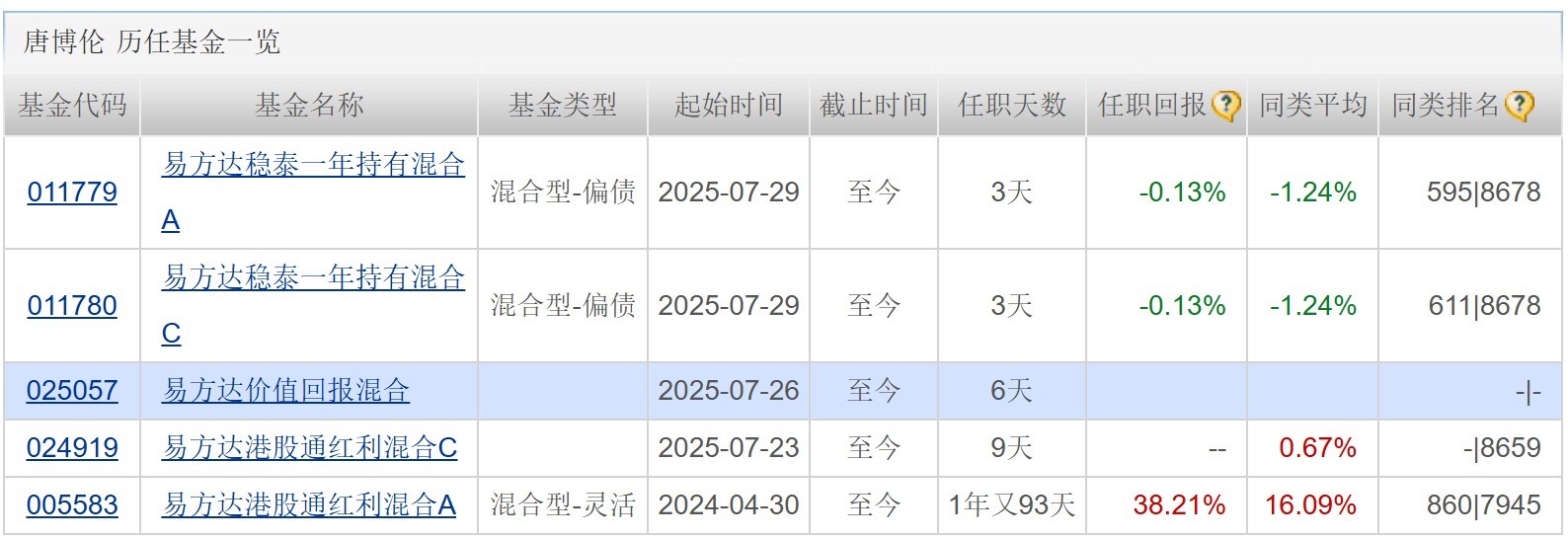 2、ETF主题机会 光伏产业处于周期底部,或需供给侧加速出清。工信部针对新增产能的能耗水耗规定明显趋严,后续或以能耗控制为抓手进一步遏制存量产出,政策或将逐步落地。行业各环节达成初步自律,逐步减产至近两年低位,随着行业供给侧逐步出清,预计盈利或将有所修复。可关注光伏ETF等产品。 四、下周一重点关注新发基金 1.基金简称:易方达价值回报混合 基金类型:混合型证券投资基金 基金经理:唐博伦 业绩比较基准:中证800指数收益率*55%+中证港股通综合指数收益率*20%+中债总指数收益率*25% 基金经理过往业绩: