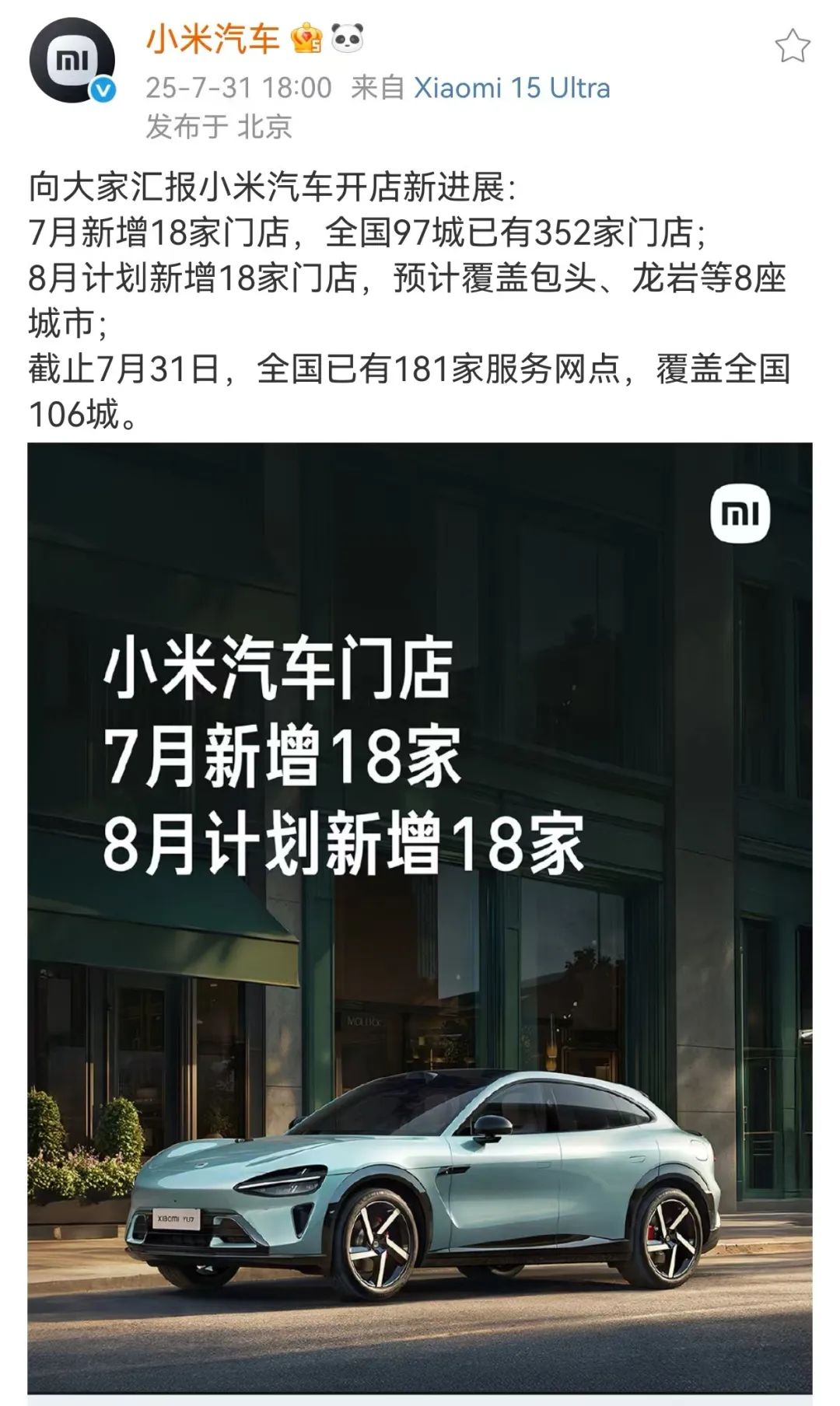 小米汽车交付量超过30000台 小米集团创始人、董事长兼CEO雷军8月1日在社交媒体平台表示,2025年7月,小米汽车交付量超过30000台。上海证券报记者梳理发现,这是今年小米汽车单月交付量最多的一个月。 ![]() 业内人士认为,作为小米重点布局的智能电动汽车项目,此次交付量的大幅提升,意味着其在生产制造和市场推广方面的一定进展。 在今年5月22日的小米15周年战略新品发布会上,雷军透露小米SU7系列累计交付量已突破25.8万台。7月10日,小米汽车官方微博宣布,小米汽车上市15个月,完成了30万辆交付。 此前,雷军在宣布第20万辆汽车交付时透露,小米汽车的产能正在不断提升,公司已将2025年的全年交付目标上调至35万辆。 “从数据来看,小米汽车今年前7个月交付量整体稳中有升。”对外经济贸易大学国际经济贸易学院教授屈启兴对上证报记者表示,综合产能、订单及渠道等因素,预计今年8月至12月交付量将呈“前低后高”态势。若供应链无重大扰动,实现原定目标问题不大。潜在风险在于竞品年末集中冲量可能分流部分订单,需密切关注产能分配与库存周转动态。 与此同时,小米汽车官方微博7月31日透露小米汽车开店的新进展:7月,小米汽车新增门店18家,全国共有352家门店,覆盖97座城市。此外,今年8月,小米汽车计划新增18家门店,预计覆盖包头、龙岩等8座城市。截至7月31日,小米汽车在全国已有181家服务网点,覆盖全国106城。 ![]() 比亚迪完成全年销量目标近半 8月1日晚,比亚迪公告,7月汽车销量344296辆,环比下降8.8%,2024年同期销量342383辆,同比增长近1%。其中,乘用车销量341030辆,纯电动乘用车销量177887辆,插电式混合动力乘用车销量163143辆。比亚迪1-7月累计汽车销量249万辆,同比增长27%。 比亚迪有关负责人此前表示,比亚迪2025年汽车销量目标为550万辆,其中,海外市场目标80万辆。 中国汽车流通协会认为,7月,车市步入传统淡季。受部分地区补贴政策阶段性退坡、汽车消费金融返佣下调及厂家促销力度收缩影响,消费者持币观望情绪加剧。综合来看,7月乘用车销量略高于预期,预计乘用车终端销量约190万辆左右。预计8月整体市场表现将好于7月。 在业内人士看来,中国车企不再局限于国内市场,而是通过本地化生产、技术输出参与全球竞争。2025年下半年新能源汽车市场竞争将更加激烈。在这场“技术+产能+全球化”的综合博弈中,谁能率先突破50万的年交付量,或将重新定义行业格局。 (文章来源:上海证券报) |