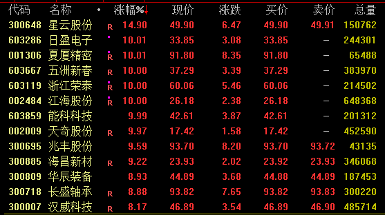 A股早盘维持窄幅震荡走势,午后发力拉升,小盘股较为活跃;港股强势上扬,恒生指数涨近1%,恒生科技指数涨超1.5%。 具体来看,沪指盘中震荡上扬,午后走高;深证成指、创业板指午后止跌回升,科创50、中证2000指数等涨超1%。截至收盘,沪指涨0.66%报3583.31点,深证成指涨0.46%报11041.56点,创业板指涨0.5%报2334.32点,科创50指数涨1.22%,沪深北三市合计成交15184亿元,较此前一日减少逾1000亿元。 场内近3900股飘红,军工板块爆发,北方长龙、长城军工涨停创出历史新高,爱乐达、恒宇信通均涨停;工业母机概念活跃,华东数控、国机精工、夏厦精密等涨停;人形机器人概念拉升,浙江荣泰涨停创历史新高,五洲新春、能科科技等均涨停;半导体板块上扬,东芯股份20%涨停,芯导科技、芯原股份涨超10%。 港股方面,英诺赛科大涨超30%,山东黄金涨超10%,华虹半导体涨近9%,老铺黄金涨超6%。 军工板块爆发 军工板块盘中大幅拉升,个股掀涨停潮。截至收盘,北方长龙、爱乐达、恒宇信通、科思科技等20%涨停,新光光电涨超13%,长城军工涨停再创历史新高。  机构表示,当前,“十四五”规划已步入收官冲刺阶段,八一建军节、“九三”阅兵等多重时间坐标的叠加,正推动军工板块迎来前所未有的格局重塑。 兴证策略团队指出,当前军工板块拥挤度仍在中等水平,是成长主线中位置合适、值得配置的细分领域。作为国家战略部署受益品种,军工板块在未来一段时间有望受到阅兵+“五年规划”会议的双重催化:一方面,参考历史经验,阅兵等事件将对军工行情构成重要催化。另一方面,即将召开的“五年规划”会议也有望对军工板块行情构成较大提振。 同时,对内“五年计划”交界节点叠加对外全球竞争力提升,军工行业新一轮订单释放的预期正在增强,是本轮军工基本面持续改善的长期逻辑支撑。对外,当前世界面临百年未有之大变局,全球军备竞赛拉开帷幕。随着我国武器在世界持续展现强大竞争力,中国在国际军贸中的市场空间有望进一步打开。 人形机器人概念活跃 人形机器人概念再度活跃,截至收盘,星云股份涨近15%,日盈电子涨停斩获两连板,夏厦精密、五洲新春、浙江荣泰、能科科技等均涨停;兆丰股份涨超9%,盘中逼近历史新高。  行业方面,特斯拉CEO马斯克近日透露,目前第三版擎天柱的设计已适配量产;京东近日正式成立智能机器人事业部,在具身智能领域的战略布局持续深化,后续,2025世界机器人大会将于8月8日举办,世界人形机器人运动会将于8月14日开幕,有望持续拉动板块热度。 民生证券指出,全年来看,客户维度:机器人长期Beta看T链,马斯克表示今年目标生产数百台OptimusV3原型机,5年内能够达到百万台量级,特斯拉新进展可以期待;产品维度:关注边际变化最大的硬件环节。马斯克表示OptimusV3进行了全新设计,潜在变化大的环节包括灵巧手传动方案、触觉传感器构型、类RV对髋部、肩部谐波的替代、轻量化以塑代钢、万向节替代关节轴承等;资本维度:宇树科技已开启上市辅导,头部国产人形机器人主机厂的证券化进程不断加速,正在成为板块情绪全新催化剂。 半导体板块拉升 半导体板块盘中震荡走高,截至收盘,东芯股份20%涨停,芯导科技、芯原股份涨超10%,长光华芯涨逾9%,华虹公司涨超7%,盘中创出新高。  港股方面,华虹半导体涨近9%,中芯国际涨近3%。 湘财证券指出,AI大模型的破圈及AI智能眼镜、AI手机等设备市占率的提升,带动端侧AI算力的需求上行,驱动高性能以太网交换机、先进存储产品、GPU及边缘计算、端侧算力芯片等多种半导体硬件的市场需求稳步增长。传统消费电子领域,智能手机、PC及IOT板块弱复苏态势延续,叠加国产化替代仍为大势所趋,具有自主可控能力的半导体企业有望持续受益。
