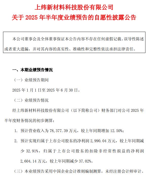 0上纬新材8月4日公告,公司预计2025年半年度营业收入为7.84亿元,较上年同期增加12.50%,归属于上市公司股东的净利润为2,990.04万元,较上年同期减少32.91%。业绩下滑主要由于海外销售运费及佣金增加约1,100万元 ...