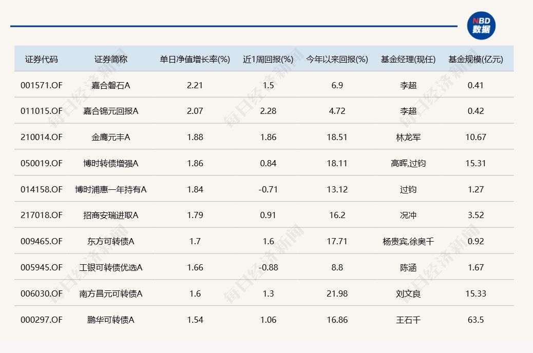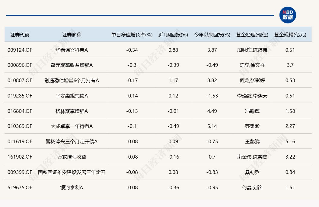 3.单日债基涨跌幅榜