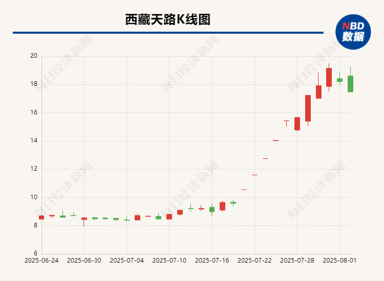 《每日经济新闻》记者注意到,中国电建近期因1.2万亿元大工程等消息股价大涨,但在7月25日盘中触及7.84元/股的高点后一路回落。截至2025年8月4日收盘,中国电建的股价为6.46元/股,仅比西藏天路的认购价格高出两分。 ![]() 西藏天路董事会在2024年10月9日审议通过了《关于授权董事长择机出售公司交易性金融资产的议案》。也就是说,在截至2025年8月4日的近10个月时间里,上市公司累计出售了2500万股中国电建股票,但公司并未披露成交明细。 资料显示,西藏天路成立于1999年3月,于2001年1月在上交所主板上市。2024年年报显示,西藏天路的主营业务为工程承包,水泥及水泥制品生产销售,沥青及沥青制品生产销售,矿产品加工与销售等。 而由于西藏天路是西藏本土的水泥龙头企业,近期公司股价累计涨幅较大。东方财富数据显示,7月21日至7月29日,西藏天路走出了“7天6板”的大行情,过去一个月股价的累计涨幅超过100%。 ![]() 《每日经济新闻》记者注意到,西藏天路近几年业绩波动较大——2020年至2024年期间,公司营收和归母净利润均有三年出现同比下滑。此外,今年一季度,西藏天路营收虽然同比增长10.76%至3.39亿元,但公司归母净利润亏损1.24亿元,出现“增收不增利”的现象。 今年7月,西藏天路发布2025年上半年业绩预告,公司预计2025年上半年归母净利润亏损7700万元至1.15亿元;预计扣非净利润亏损4500万元至8300万元,上年同期亏损1.08亿元。 8月4日下午,《每日经济新闻》以投资者身份致电西藏天路,当被问及公司目前仍持有4177万股中国电建股票,后续是否还有出售的计划时,公司董秘办工作人员称:“不知道,要领导层开会决定。”而对于公司已经出售的2500万股中国电建股票的价格和明细,该人士表示其没有,“但公告上写了对公司的利润影响是积极的”。 (文章来源:每日经济新闻) |