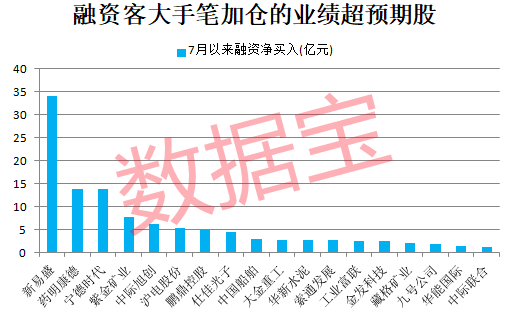 | 半年报业绩最具看点的公司有哪些? 业绩超预期股名单出炉 A股半年报业绩密集披露过程中,部分公司业绩超过市场预期,成为资本市场焦点。在经济环境复杂、行业竞争激烈的背景下,这些企业逆势上扬。有的受益于行业高景气度,订单纷至沓来;有的凭借技术创新,开拓新市场、提升产品附加值。它们的亮眼表现,不仅为自身发展注入强劲动力,也为A股市场注入一剂“强心针”,吸引更多资金关注。 据证券时报·数据宝统计,已经披露半年报业绩数据(含半年报、业绩快报、业绩预告)的股票中,券商机构认为业绩“超预期”的股票有59只,多只千亿市值的行业龙头股入围,包括宁德时代、工业富联、紫金矿业、牧原股份、中际旭创、药明康德等。分行业看,这些股票主要来自电力设备、机械设备、电子、汽车、国防军工、基础化工等行业,其中电力设备行业入围股票数量最多,有8只。 业绩增速方面,据数据宝统计,按照半年报、业绩快报、预告净利润下限(无下限则取公告数值)计算,合计有18只股票上半年净利润翻倍增长。 净利润增速最高的是智明达,公司上半年实现净利润0.38亿元,同比增长21.48倍。报告期内,公司在嵌入式模块领域新增订单显著增长,尤其在弹载产品和AI类产品方面表现突出。东北证券研报认为,公司在手订单饱满,全年业绩确定性高。此外,此前筹划的定增将强化公司在无人装备、商业航天等新兴领域的研发和产业化能力,提升整体产能和技术壁垒,支撑公司业绩持续高增长。 仕佳光子上半年实现营业总收入9.93亿元,同比增长121.12%,其中公司境外收入4.52亿元,同比增长323.59%;实现净利润2.17亿元,同比增长17.12倍。报告期内,公司开发出适用于1.6T光模块用的AWG芯片及组件,同步在客户端验证。公司还开发出应用于800G/1.6T光模块的MT-FA产品,实现批量出货。 索通发展2025年上半年净利润为4.5亿元至5.4亿元,同比增长13.35倍至16.22倍。报告期内,预焙阳极所处的原铝产业链展现出良好发展态势,原铝价格上涨,市场需求旺盛,因此,公司主要产品预焙阳极价格上涨。  融资资金出手加仓多只龙头股 从二级市场表现方面来看,业绩超预期股票获得市场认可度较高。据数据宝统计,截至8月4日收盘,上述59只业绩超预期股今年以来平均上涨37.45%,大幅超出同期上证指数。6股累计涨幅翻倍,分别为仕佳光子、杰普特、新易盛、震裕科技、智明达、匠心家居。部分股票表现相对较弱,如长城汽车、中国中车、昊华科技、中国船舶、宗申动力等年内股价为下跌状态。 在公布超预期业绩数据后,不少股票获得融资客大手笔加仓。据数据宝统计,截至8月4日收盘,18只业绩超预期股票7月以来融资净买入超1亿元,包括新易盛、药明康德、宁德时代、紫金矿业、中际旭创等。  新易盛融资净买入额34.06亿元,排在第一位。公司预计今年上半年净利润为37亿元至42亿元,同比增长327.68%至385.47%。报告期内,受益于人工智能相关算力投资持续增长,公司产品结构优化,高速率产品需求持续增加。国泰海通证券认为,公司业绩预告大超预期,随着高端的800G/1.6T产品占比逐步提升,有望为公司业绩带来更大贡献。