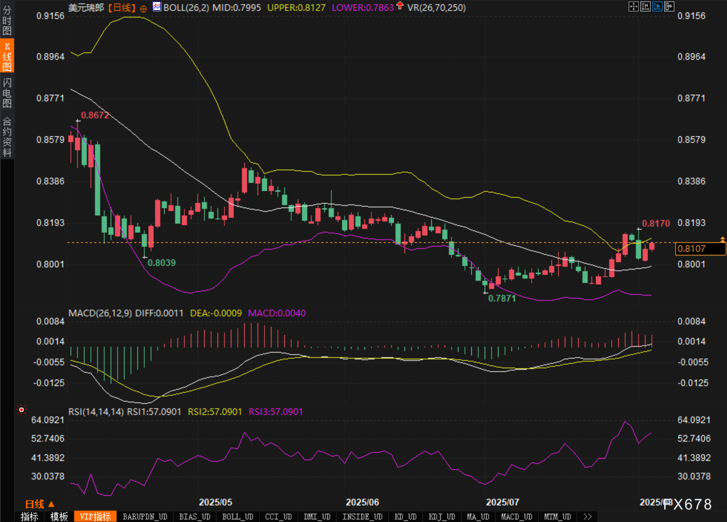 周二 8月5日 欧洲交易时段 美元兑瑞郎汇价连续第二个交易日上行 交投于0 8110附近 美元的反弹表现与即将公布的美国ISM采购经理人指数数据密切相关 此外 美国联邦储备理事会成员库格勒意外辞职 引发市场对美联储独立 ...