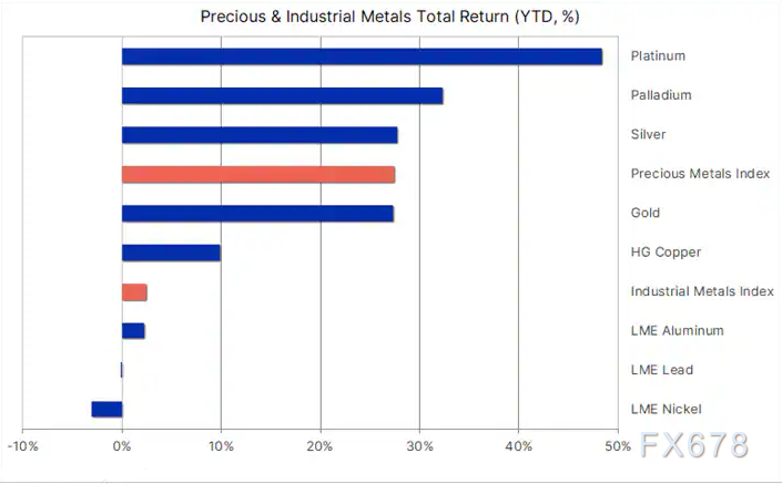 美国总统特朗普的因素仍然对全球大宗商品市场拥有相当大的影响力。7月,人们的注意力集中在8月1日这个自行设定的最后期限之前紧张的贸易谈判上。尽管美国与欧盟达成了框架协议,且在8月中旬90天关税休战到期前仍在与中国继续谈判,但美国的其他贸易伙伴却难以达成协议。 ![]() 7月,贵金属在上半年的涨幅基础上进行盘整。白银和铂金延续了涨势,相对黄金收复了部分失地。黄金在4月触及3500美元的历史高点后,一直处于窄幅波动中。铂金今年以来的涨幅一度达到61%,白银则接近40美元——这是自2011年以来的最高水平,不过仍低于50美元的历史峰值。 主要金属今年以来的表现 本月初,支撑白银和铂金走势的还有纽约高等级铜价的飙升,7月8日铜价触及每磅5.8955美元的纪录高位。此前,特朗普总统出人意料地提议对铜进口征收50%的关税,这一比例是市场预期的两倍。这番言论导致纽约铜价相对伦敦金属交易所(LME)铜价的溢价达到创纪录的34%,引发了在截止日期前向美国运送铜的热潮。 ![]() 然而,上周特朗普突然反转态度,宣布至少在2027年1月之前,期货交易所交易的精炼铜将被排除在关税之外,这一交易随之瓦解。纽约市场的溢价在几分钟内崩盘,交易商蒙受损失,美国仓库的铜库存达到21年以来的最高水平。随着进口即将枯竭,美国铜价现在可能会跌至全球基准价格下方,以清理过剩库存。 关税对美国铜价与伦敦金属交易所铜价的影响 ![]() 虽然纽约铜价占据了新闻头条,但伦敦金属交易所的铜价相对稳定,在每吨9550美元(每磅4.33美元)左右波动。关税的反转恰恰凸显了铜在全球能源和数字转型中的战略地位。由于交通电气化、产业回流以及人工智能驱动的数据中心快速扩张,铜的需求预计将大幅上升。 与此同时,铜的供应由于投资不足以及近期的供应中断(包括智利的一起矿业事故)而持续受限。因此,铜价可能会保持波动,但在短期动能和长期结构性利好因素的支撑下,整体偏向上涨。铜正日益成为能源和数字时代具有决定性意义的大宗商品。 贵金属:焦点转向关税与美联储政策 ![]() 在经历了出色的上半年之后,投资类金属在7月进入盘整阶段,铜价的剧烈波动引发了一些市场波动。黄金已横盘整理四个月,这让白银和铂金有机会迎头赶上。今年以来,黄金和白银的涨幅接近27%,铂金接近50%,投资者自然会问:涨势是否已经结束? 可能并非如此。近期美国疲软的数据重新为美联储降息打开了大门。上周五发布的惨淡就业报告(包括对前几个月数据的大幅下修)使得市场几乎完全预计美联储在9月17日的下一次联邦公开市场委员会(FOMC)会议上会降息,且预计2026年还会有更多降息举措。到明年9月,市场预计美联储有效利率将下降125个基点。 近年来推动金属价格上涨的关键驱动因素依然存在,下半年可能还会出现额外的利好因素。最值得注意的是,上述美国利率可能下降的前景可能会重新点燃需求,特别是对于金属支持的交易所交易基金(ETF),因为这会降低持有黄金等非收益资产相对于短期政府债券的机会成本。 要理解黄金(进而理解白银和铂金)持久的吸引力,重要的是认识到这些金属的独特之处。与主权债券或法定货币不同,贵金属具有政治中立性。它们被普遍认为是一种价值储存手段,与任何国家的信用状况无关,这也是各国央行越来越多地将黄金作为核心储备资产进行配置的原因。 ![]() |
