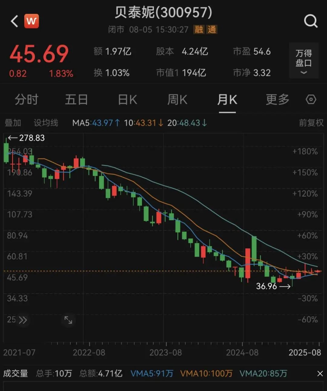 资质风险“悬而未决” 公开资料显示,初普(TriPollar)是以色列高端家用美容仪品牌,隶属于全球医美巨头Lumenis科医人集团,定位为“院线级科技家用化”的射频美容仪先驱。 由于较早进入中国市场,初普一度“风光无限”,2014年开设天猫旗舰店,次年营业额便超3亿。2020年,初普的美容仪在李佳琦双十一预售直播中创造了过亿GMV,成为淘宝直播美妆行业一小时破亿的12个单品之一。 不过好景不长,2022年,因温控缺陷可能导致皮肤烫伤,初普代理商新基石(深圳)科技有限公司召回了18余万台初普Stop Eye型号的家用射频美容仪。 同年,美容仪市场也迎来了新的监管要求。2022年3月,国家药监局发布公告,将射频治疗(非消融)设备如“射频治疗仪、射频皮肤治疗仪”作为第三类医疗器械管理。2024年7月,国家药品监督管理局宣布,上述规定延期到2026年4月实施。 ![]() 截至2025年8月,初普还未公开Ⅲ类械备案进展,若2026年4月前未获证将面临禁售。 股价破发,业绩承压 2021年上市初期,贝泰妮市值一度突破1200亿元,股价高达289元/股,被资本市场视作“药妆茅台”。 8月5日收盘,贝泰妮报45.69元/股,总市值为194亿元,距离巅峰时期已“蒸发”近千亿元,而贝泰妮当前股价也跌破当时47.33元的发行价,成为A股美妆板块首家破发企业。 ![]() 从业绩表现来看,贝泰妮近三年营收增速下滑显著,净利润连年腰斩。2021年至2024年间,贝泰妮营收从40.22亿增至57.36亿,但增速从52.57%降至3.87%;归母净利润从2021年8.63亿跌至2024年5.03亿,2023年跌28%,2024年再跌33%。 2025年第一季度,贝泰妮的表现再度恶化,营收同比降13.51%至9.49亿,净利润仅2834万,同比骤降83.97%。 ![]() 值得一提的是,贝泰妮的股东们似乎也在“撤退”。在7月底,贝泰妮的第二大股东红杉聚业计划开启第五轮的股份减持。结合之前的四轮减持,红杉聚业的持股比例已经从最初的21.58%降至9.66%,累计套现金额超过60亿元;第三大股东臻丽咨询从2022年7月到2025年2月期间也累计减持了1573万股。 (文章来源:中国基金报) |