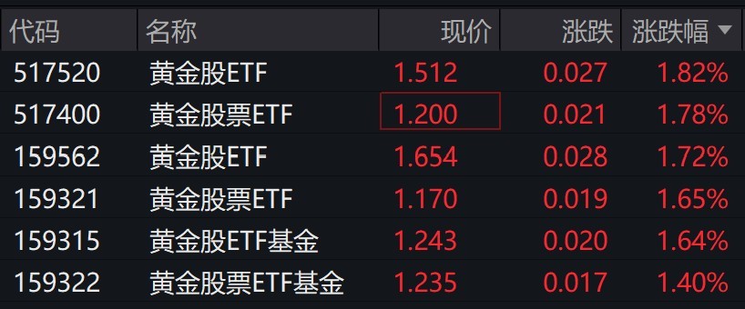 0每经记者|叶峰 每经编辑|肖芮冬 黄金概念股走强,招金矿业、山东黄金、老铺黄金涨超2%。 受盘面影响,黄金股相关ETF涨近2%。 近期,投资者关注美联储理事空缺职位任命的潜在影响,以及美联储年 ...