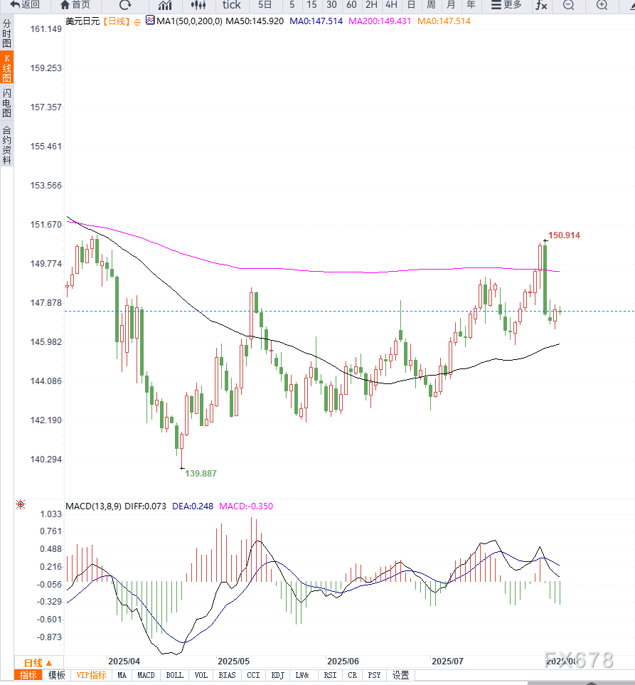 周三公布的数据显示,日本6月名义工资同比上涨2.5%,创四个月新高,但低于市场预期;剔除通胀因素后的实际工资同比下降1.3%,延续下滑趋势。与此同时,用于计算实际工资的消费者通胀指标同比增长3.8%,为七个月来最低,显示消费动能疲软。 ![]() 尽管美元在周三亚洲时段小幅走高,带动美元/日元回升,但整体反弹幅度有限。 本周公布的美国7月ISM服务业PMI意外下滑至50.1,叠加此前非农就业数据疲软,进一步强化市场对9月降息的预期,年内累计降息超过50个基点的可能性已被部分投资者定价。 “降息预期持续升温抑制了美元多头信心,这将限制美元/日元的上行空间,”一位美国银行分析师指出。 同时,美国6月贸易逆差收窄至602亿美元,低于预期,主要因年中关税推动的进口高点回落。这一结构性因素对汇率影响有限。 在缺乏重要宏观经济数据的情况下,美联储官员即将发表的讲话将成为美元方向指引的关键。 从技术图形上看,美元/日元在周二触及两周低点后反弹,当前交投于147.70-147.90区域。日线图显示,价格于7月低点构筑的上行趋势线附近获得支撑,RSI与MACD振荡指标开始修复,短线动能偏向反弹。 当前价格正处于自7月低点反弹行情的38.2%斐波那契回撤位(147.75)附近。若能突破148.00整数关口,则有望进一步升向148.50区间阻力位,并上看149.00(23.6%斐波那契水平)。 下方支撑位依次为:147.45(亚洲时段低点)、147.00整数关、146.85(4小时图200期SMA与50%回撤位重合)以及145.85(61.8%回撤位)。一旦跌破这些支撑,可能触发进一步技术性抛盘,目标指向145.00心理关口。 ![]() 当前美元/日元走势受限于日本经济数据疲软与美国政策预期博弈之间。尽管美元反弹,日元因通胀回落和工资下滑承压,但美联储降息预期令美元上涨空间受限。 技术上,美元/日元需要明确突破148关口才能确认阶段性底部,短期内或维持震荡偏强格局,需密切关注政策沟通与市场情绪波动。 ![]() |