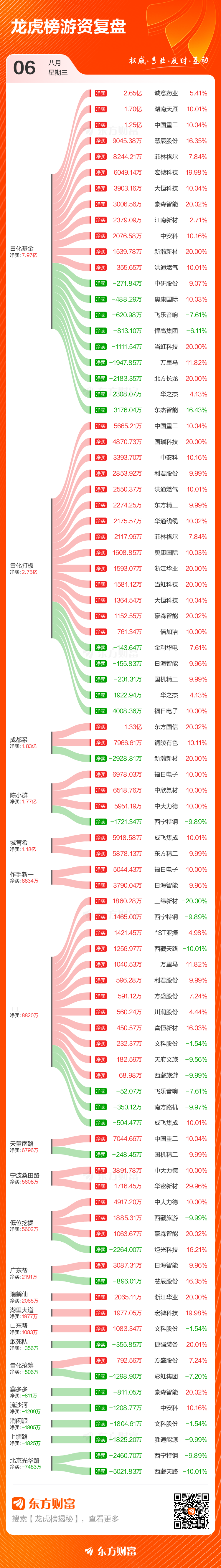 8月6日共有68只个股上榜龙虎榜,总上榜成交额147.16亿元。上榜个股中净买入额最高的是湖南天雁,金额为3.08亿元。 ![]() 当天,游资席位净买入金额最高的个股是东方国信,“成都系”净买入1.33亿元。 ![]() ![]() ![]() 免责声明:本文基于AI生产,仅供参考,不构成任何投资建议,据此操作风险自担。