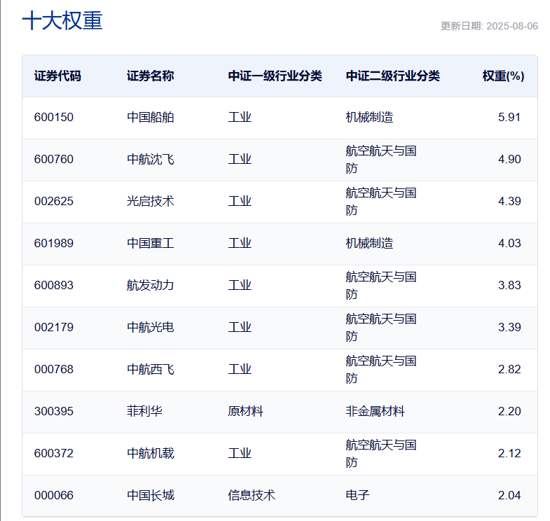 数据来源:ifind,共产党员网,央视新闻(注:指数过往业绩不代表未来,注意投资风险) 从国内的需求来看,今年还是“十四五”和“十五五”的交接时间点,之前在“十四五”早期的时候,重要的军工企业合同负债出现了非常明显的增长,相关订单也催动军工行业有一个非常大的涨幅。往后看,大阅兵、“十五五”的建设以及百年强军的目标都有希望为军工行业注入一个比较大的景气度。 关注军工ETF(512660),覆盖海陆空天信全产业链,规模居同类产品第一 军工ETF(512660)覆盖海陆空天信全产业链,是把握行业配置机会的重要工具,当前规模居同类产品第一。军工ETF(512660)跟踪的是中证军工指数,从沪深市场中选取涉及航天、航空、船舶、兵器、军事电子等国防军工领域的代表性上市公司证券作为指数样本,以反映军工行业相关上市公司证券的整体表现。该指数覆盖了国防军工行业的多个子领域,具有较高的行业集中度和鲜明的军工特色。 中证军工指数前十大成分股